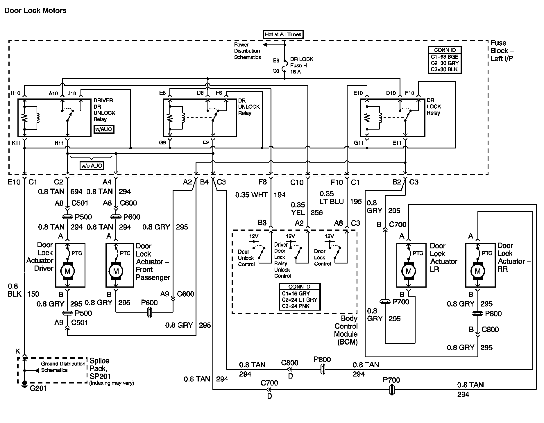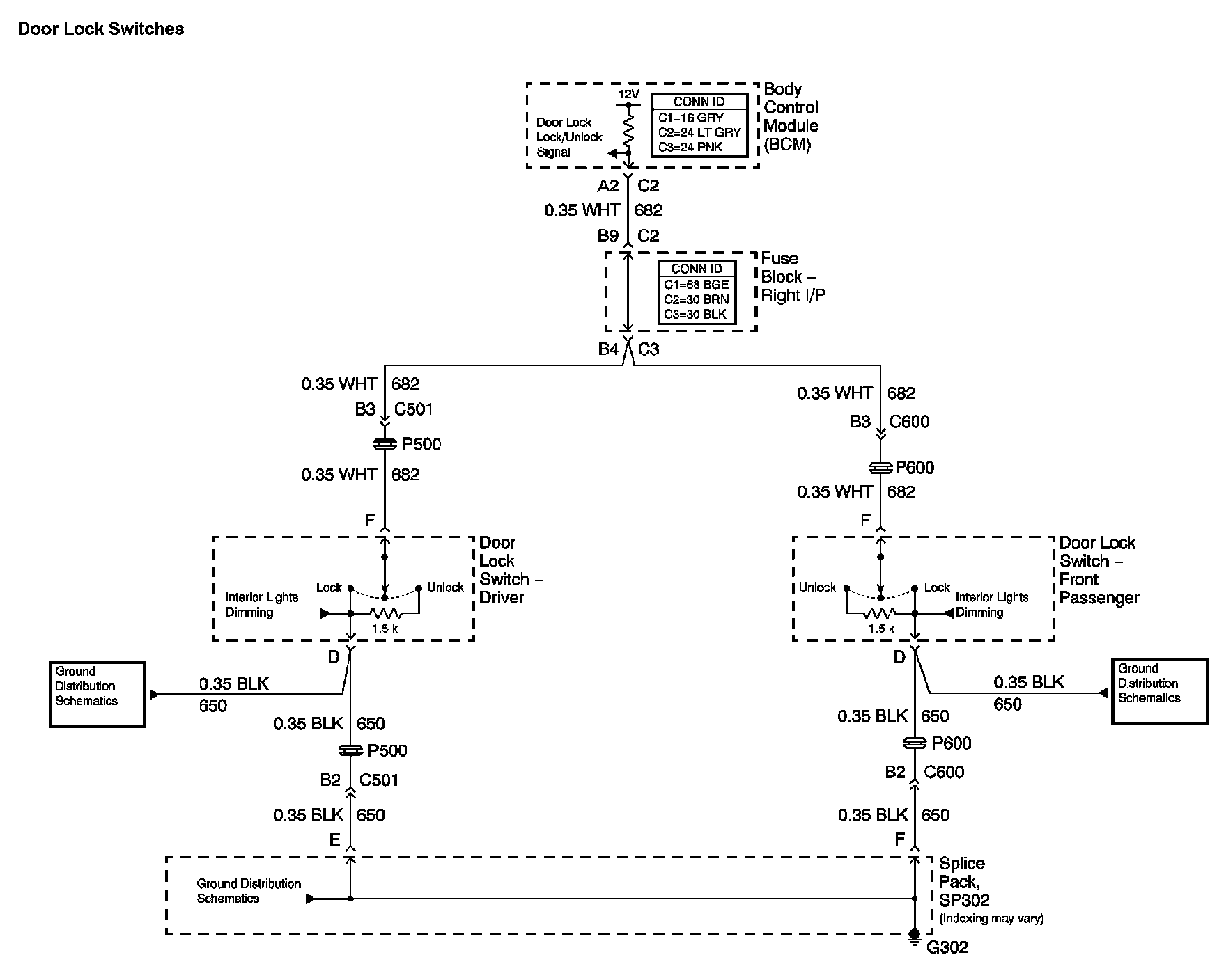 The locations for the Connectors, Grounds, Splices, and Grommets shown within these diagrams can be found via their numbers at Vehicle Locations.