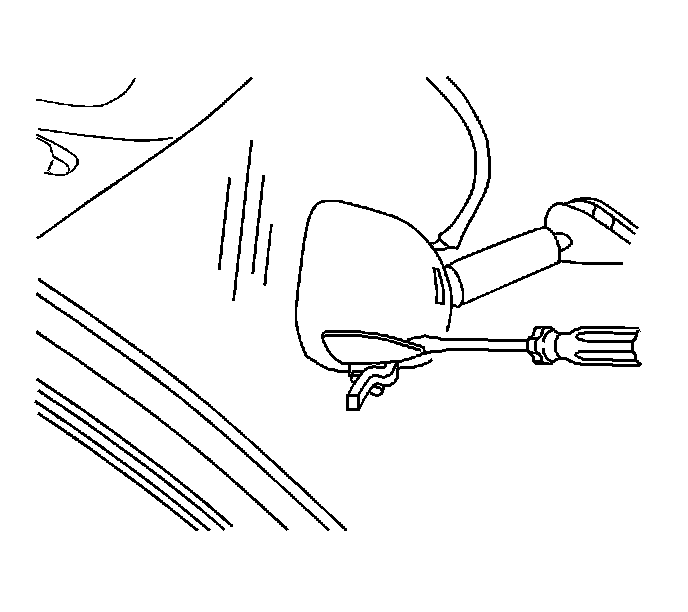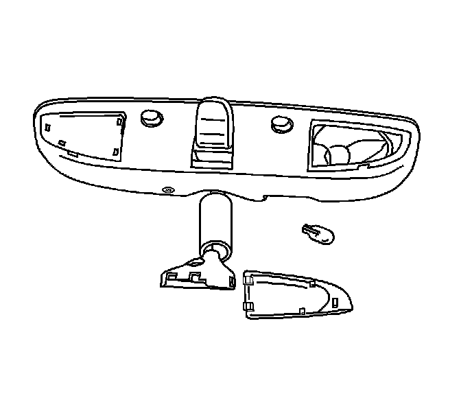 1. Use a small flat-bladed tool to disengage the edge of the lamp lens closest to the windshield. Remove the lens from the rearview mirror.