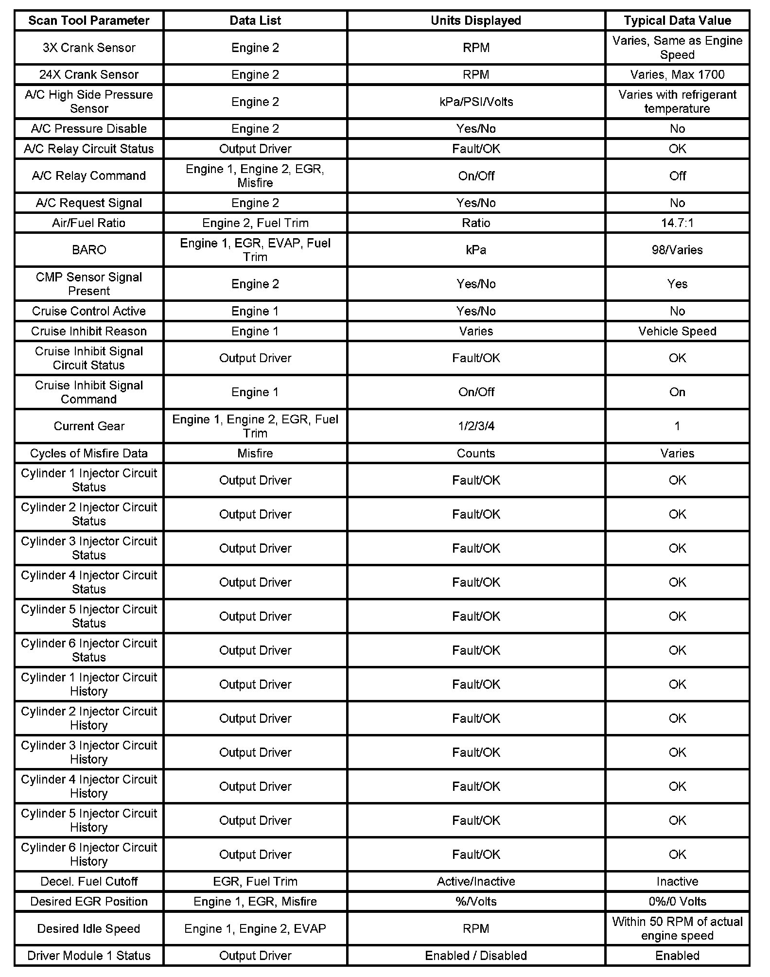 Scan Tool Data List - Powertrain System
