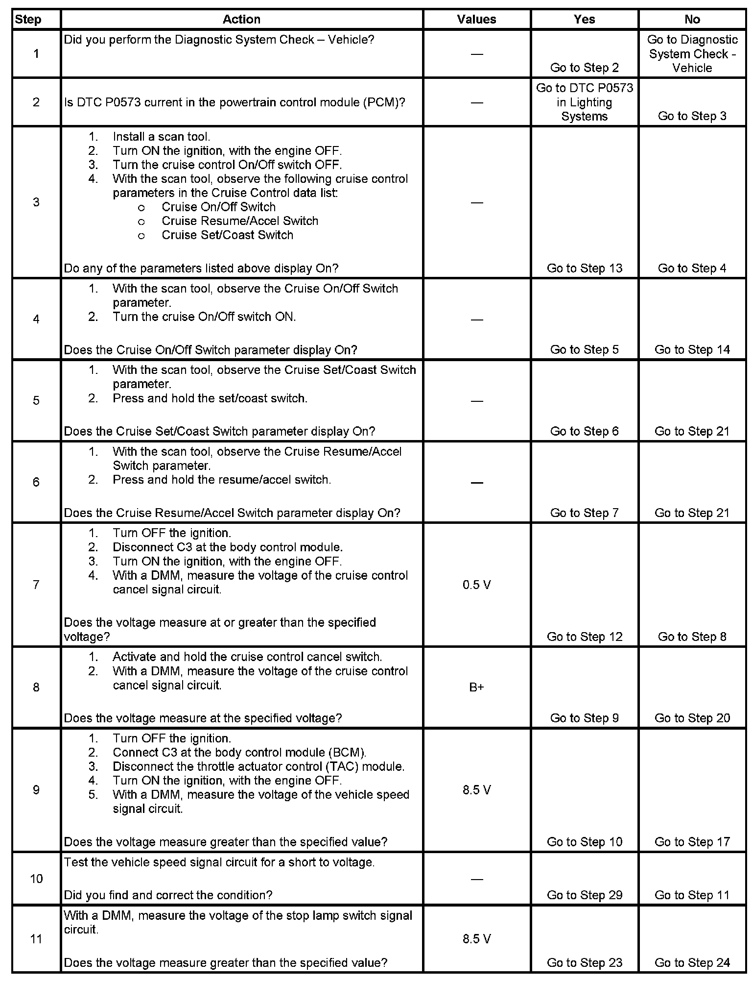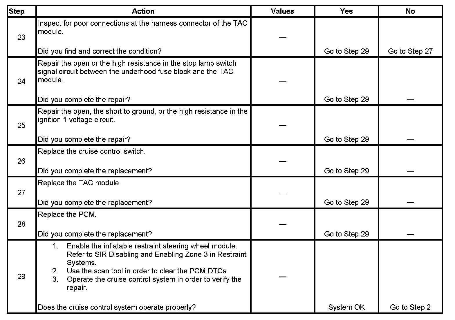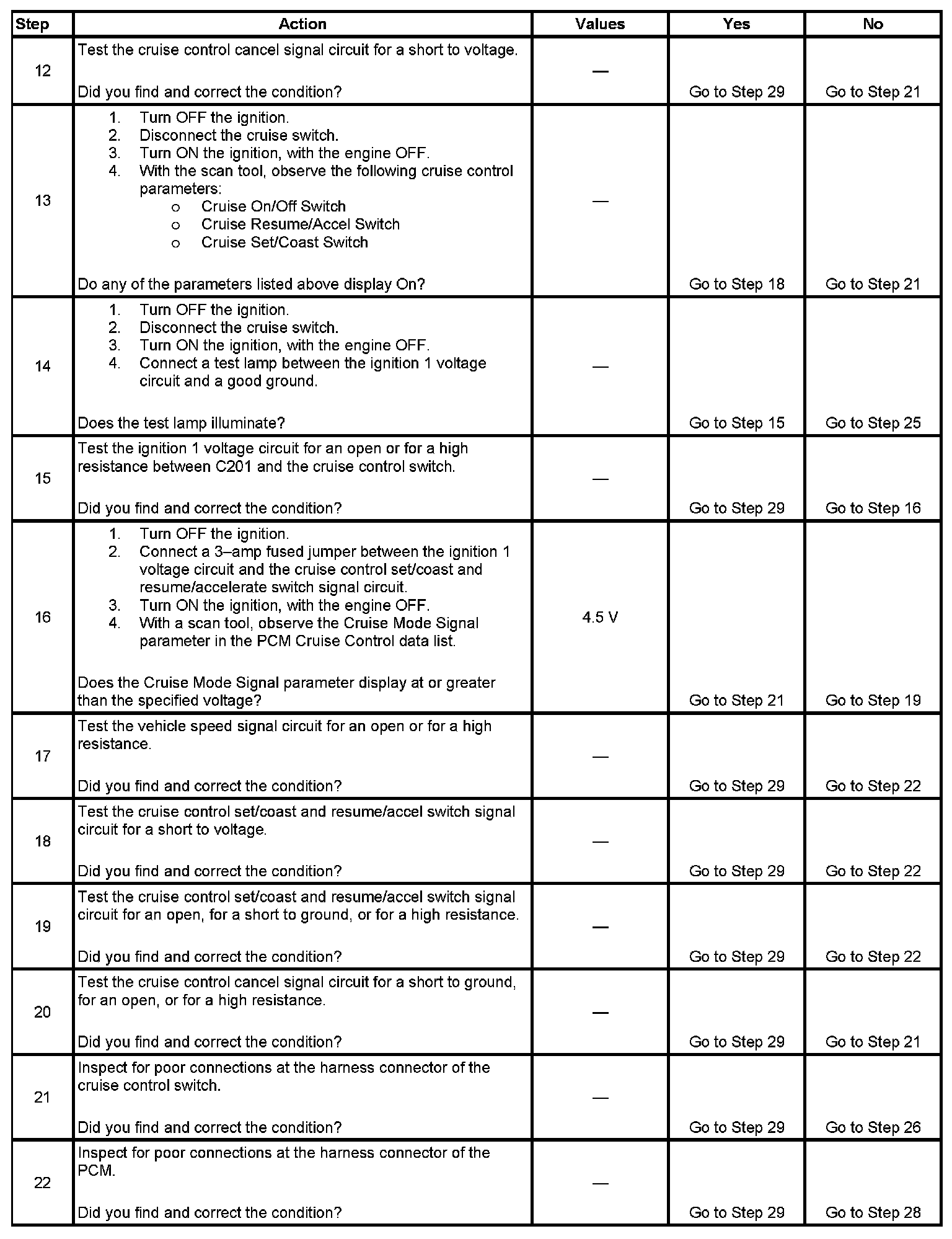 29. DTCs will set in the PCM when you perform this diagnostic table.