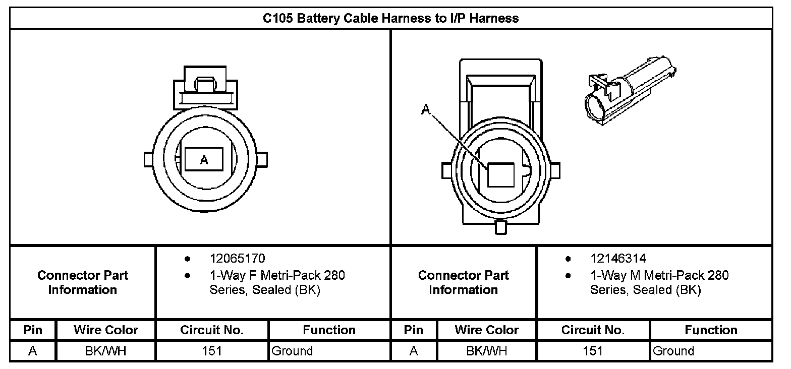 C105 Battery Cable Harness To I/P Harness: