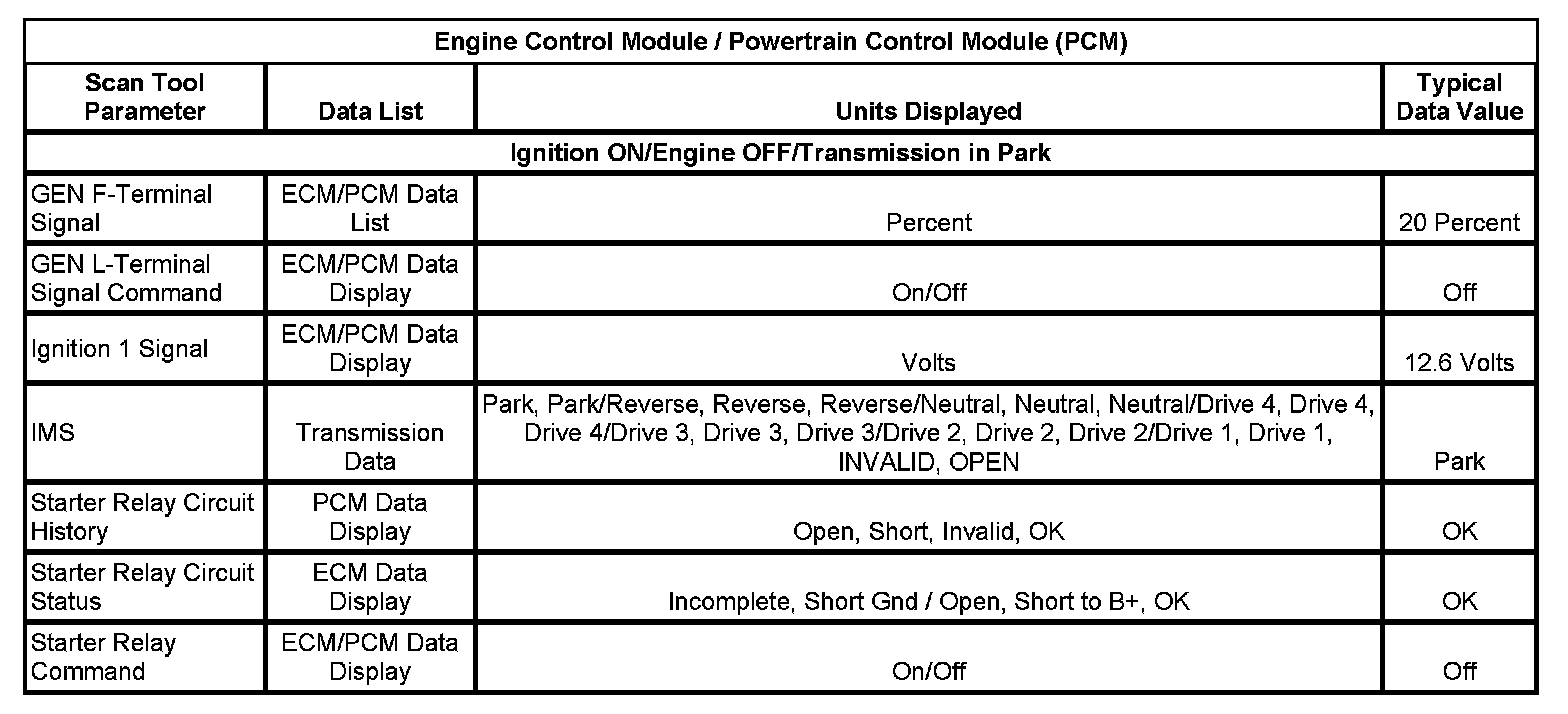 Normal Scan Tool Data Values