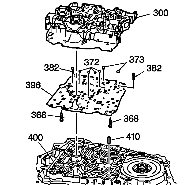 4. Remove the two retainers (368) from the valve body assembly.