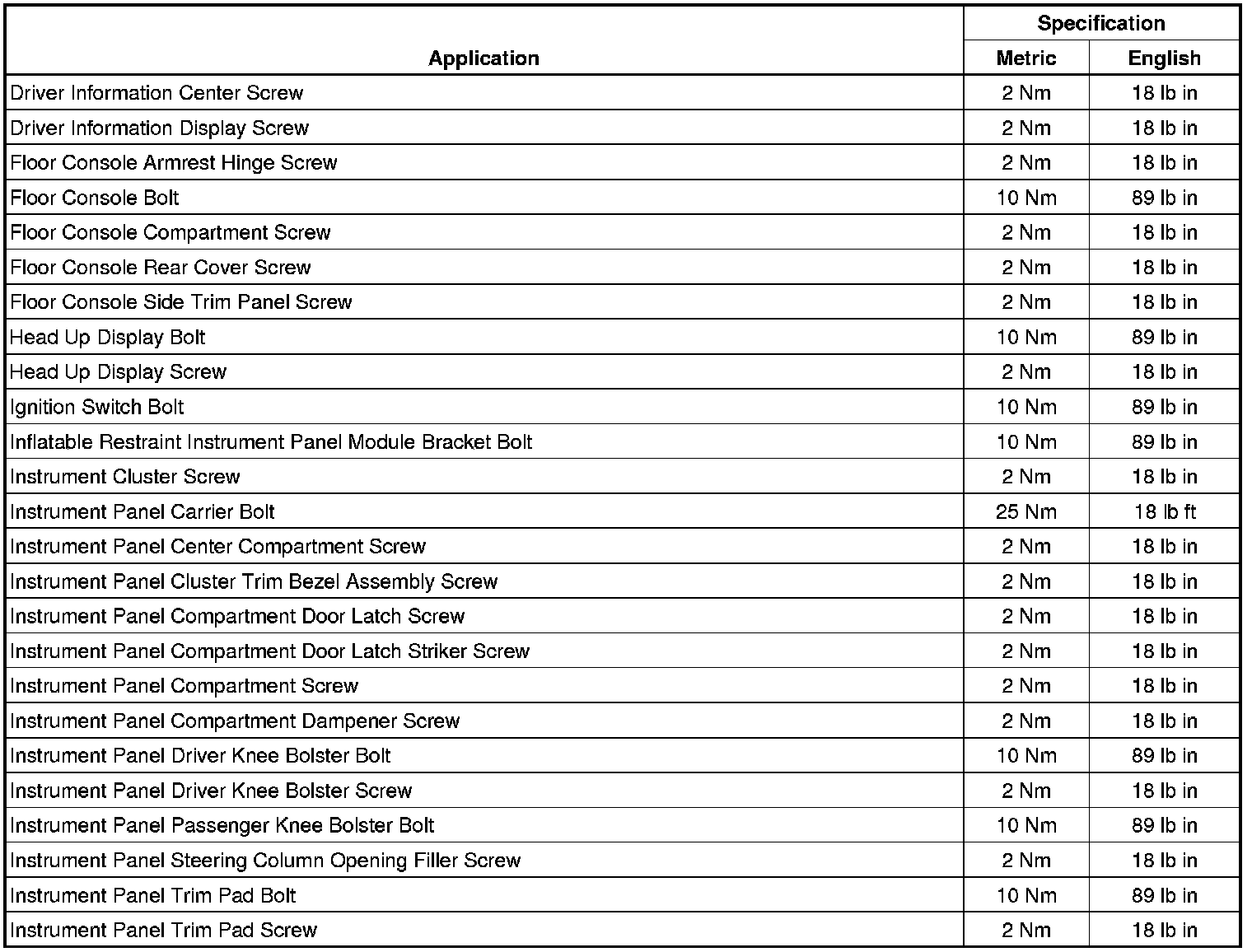 Fastener Tightening Specifications