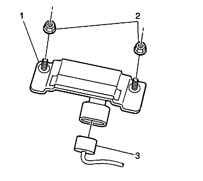 3. Remove the 2 yaw rate sensor/lateral accelerometer mounting nuts (2).