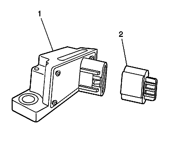 3. Connect the yaw rate sensor/lateral accelerometer electrical connector (2) to the yaw rate sensor/lateral accelerometer (1).