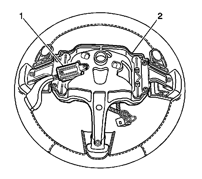 8. Remove the cruise control switch (1) from the steering wheel (2).