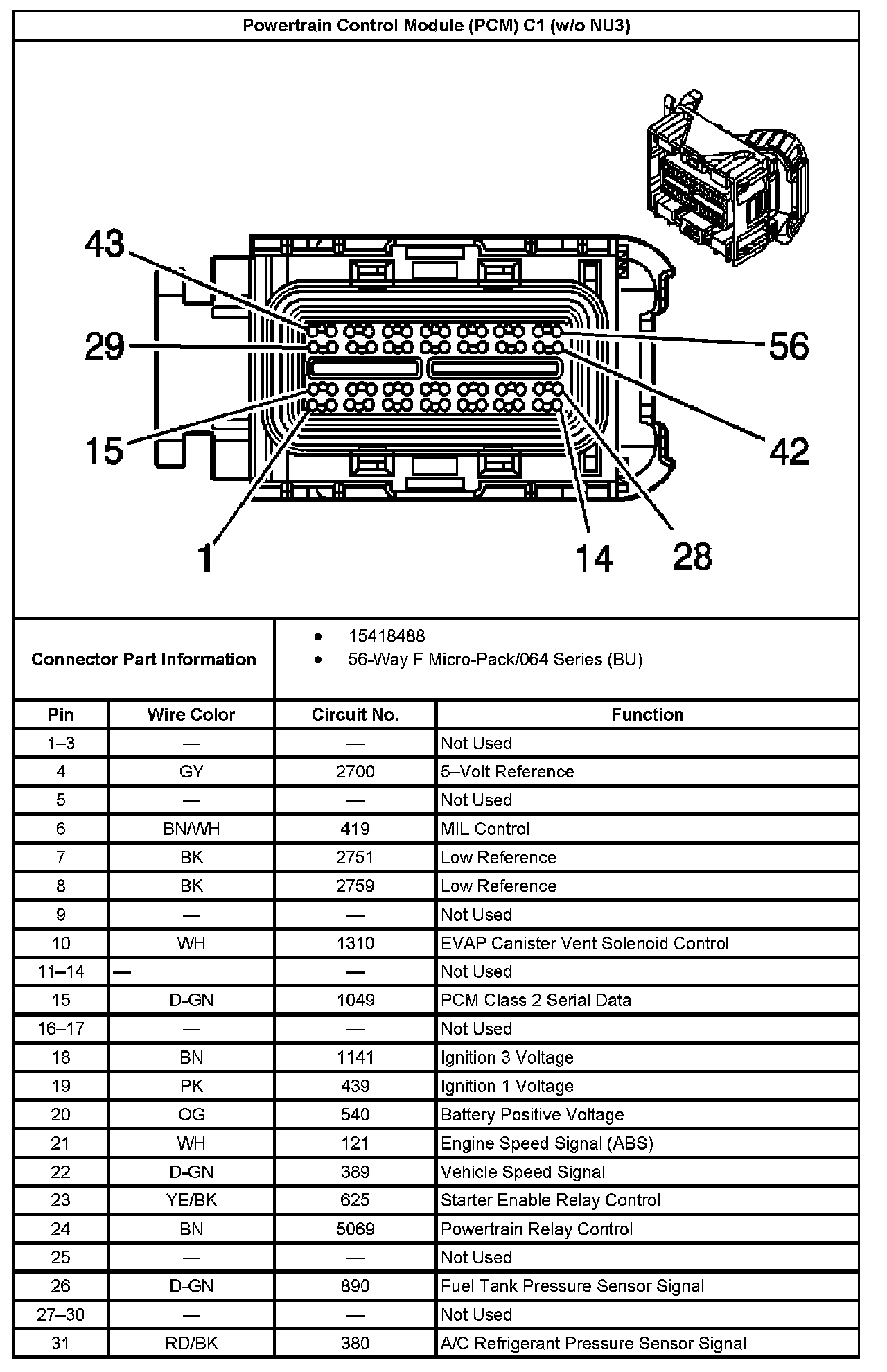 Powertrain Control Module (PCM) C1 (Without RPO Code NU3) Part 1: