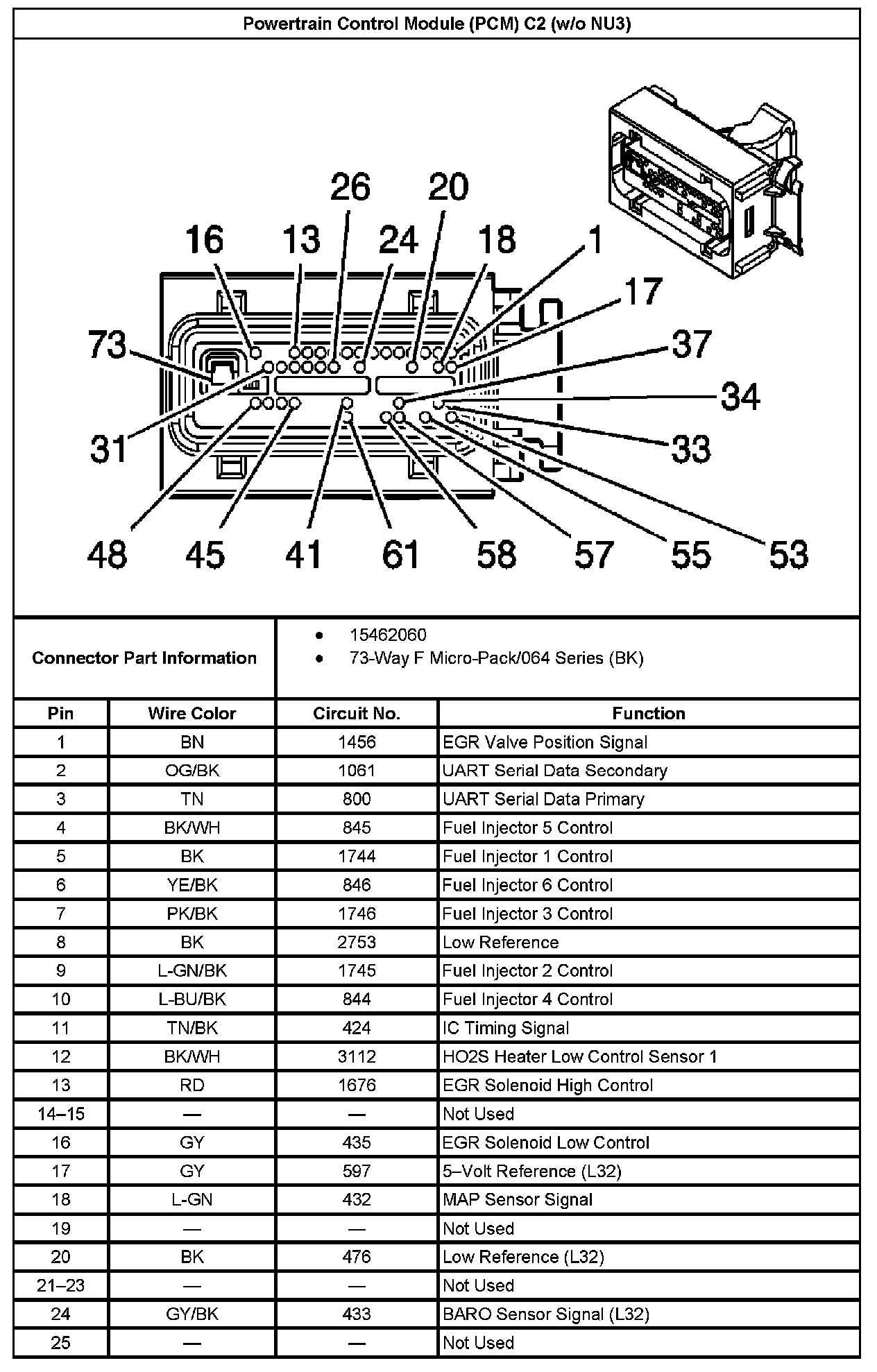 Powertrain Control Module (PCM) C2 (Without RPO Code NU3) Part 1: