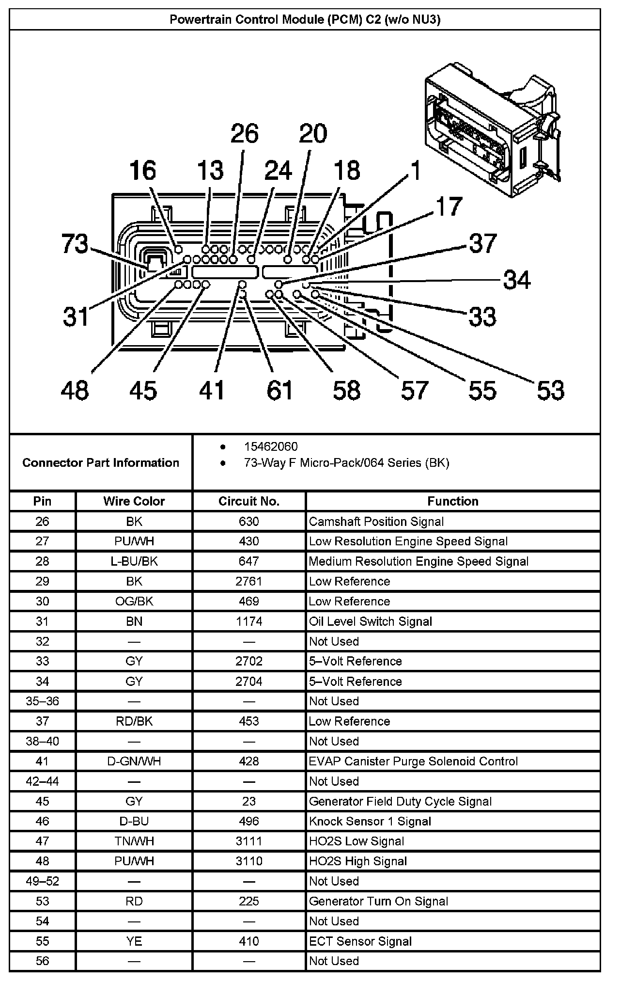 Powertrain Control Module (PCM) C2 (Without RPO Code NU3) Part 2: