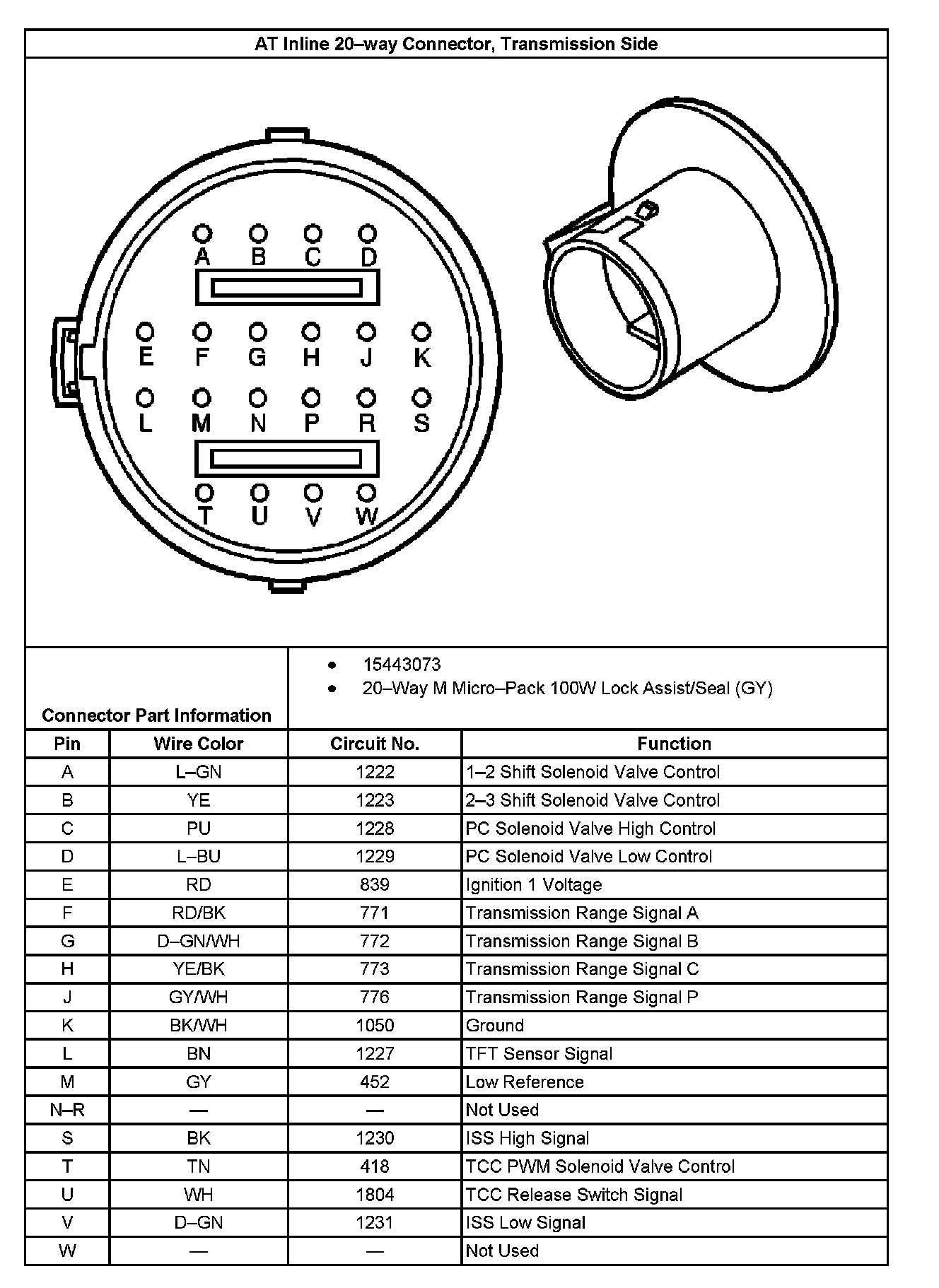 Transmission Internal Mode Switch Connector, Wiring Harness Side: