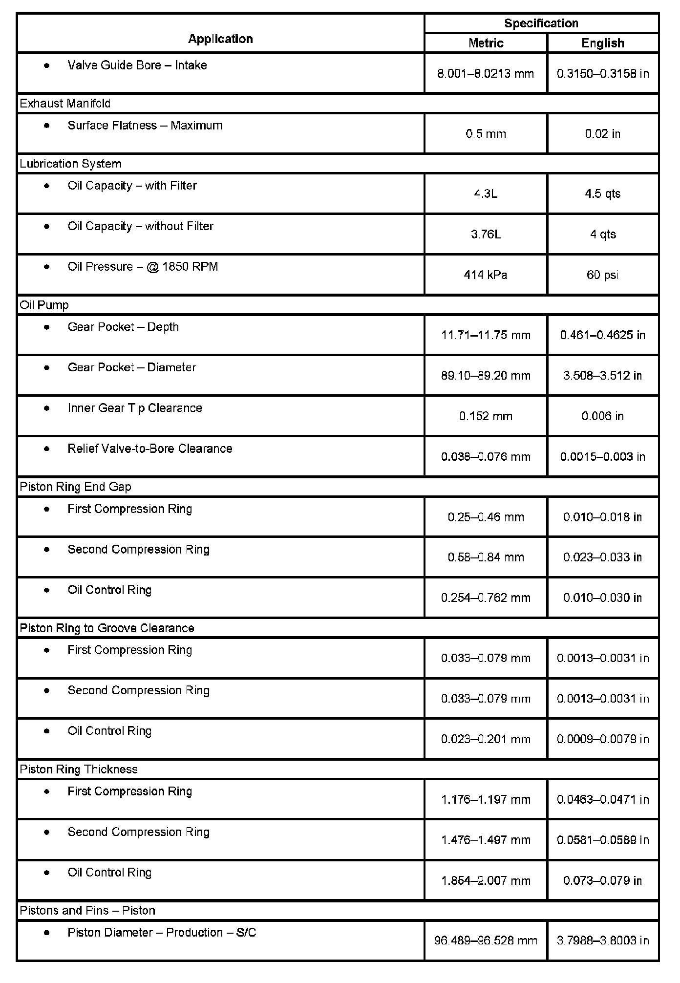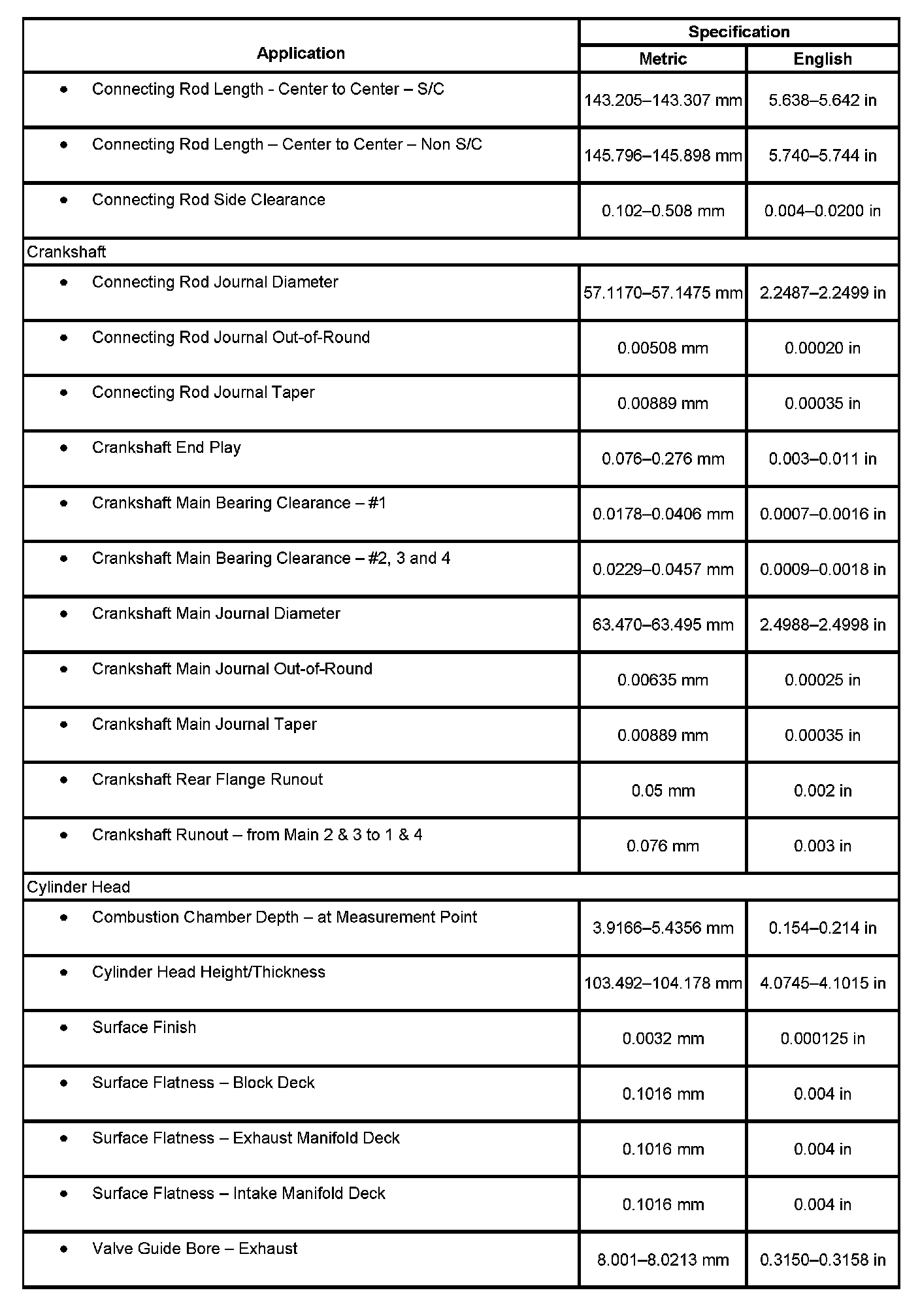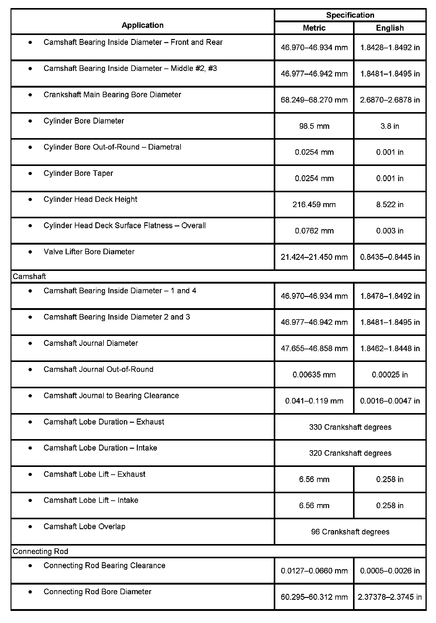 Engine Mechanical Specifications