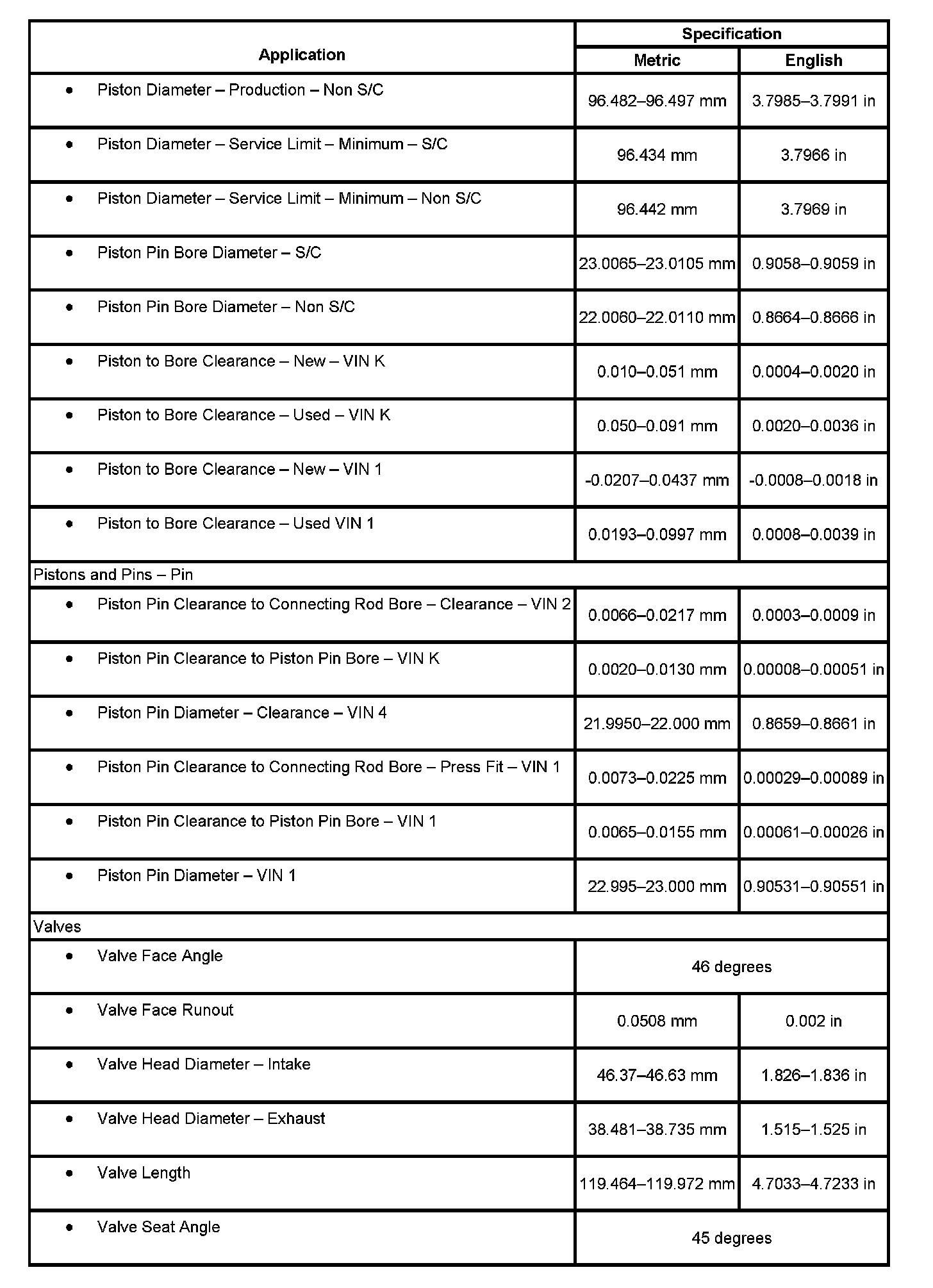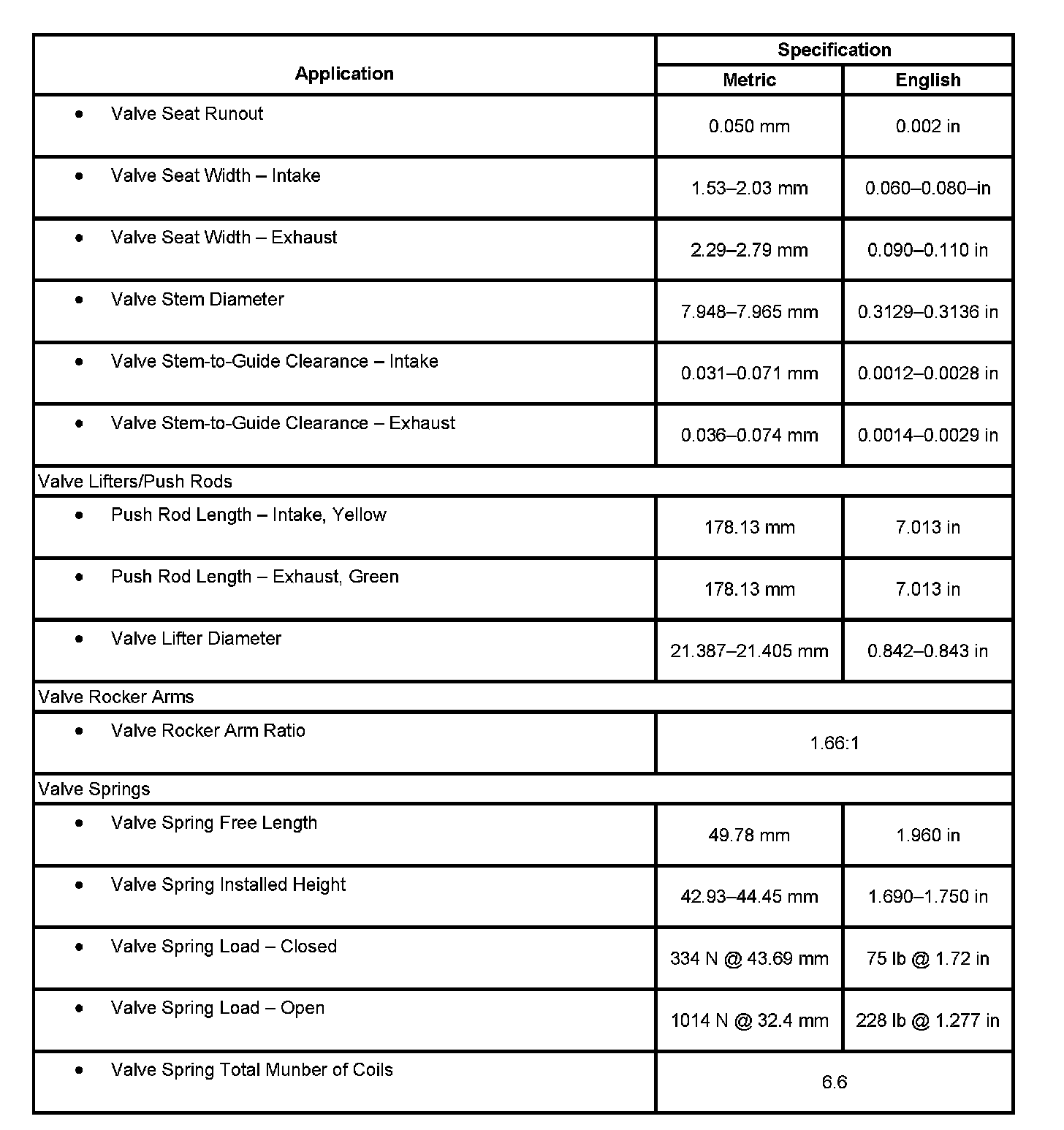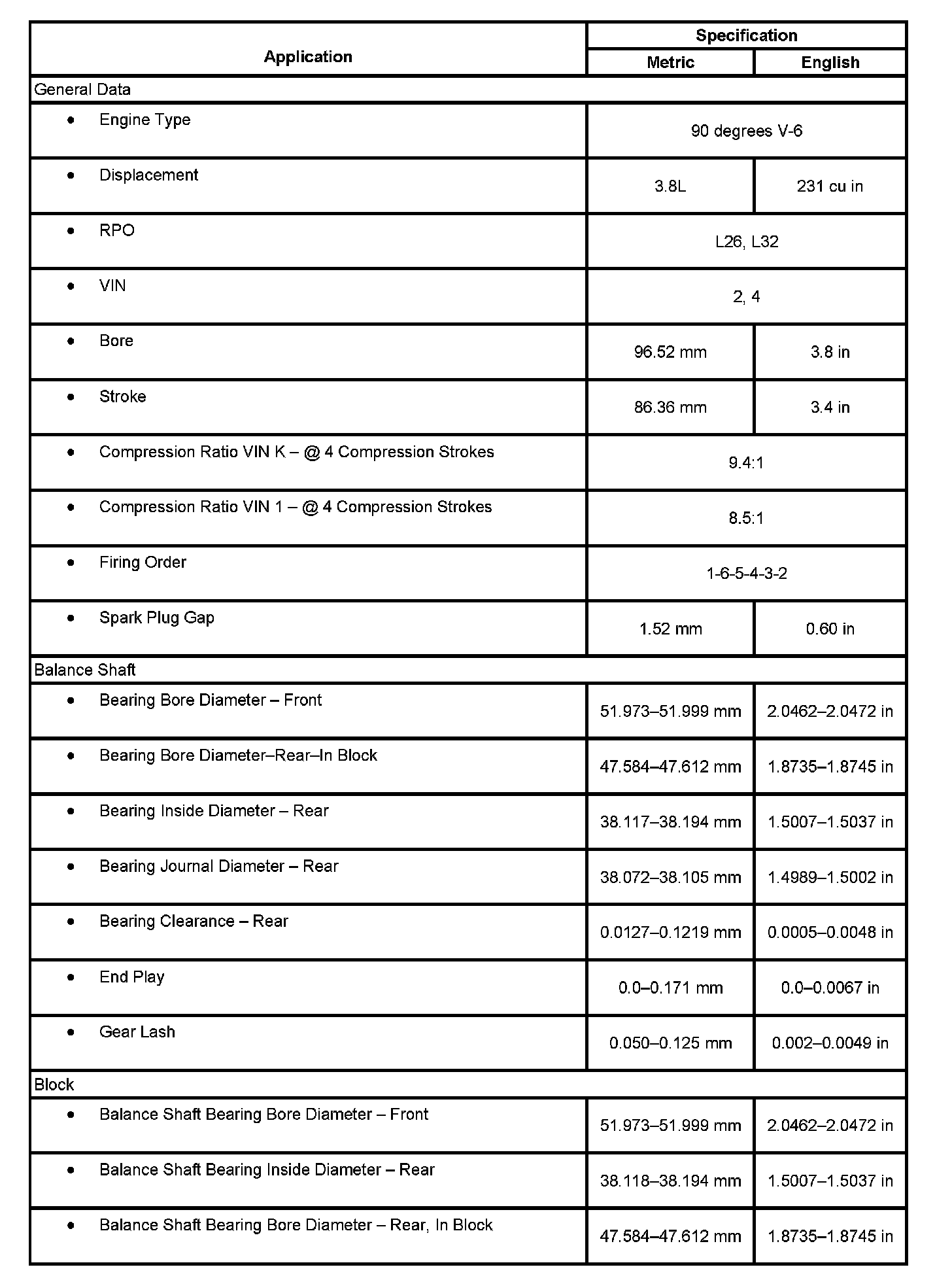 Engine Mechanical Specifications