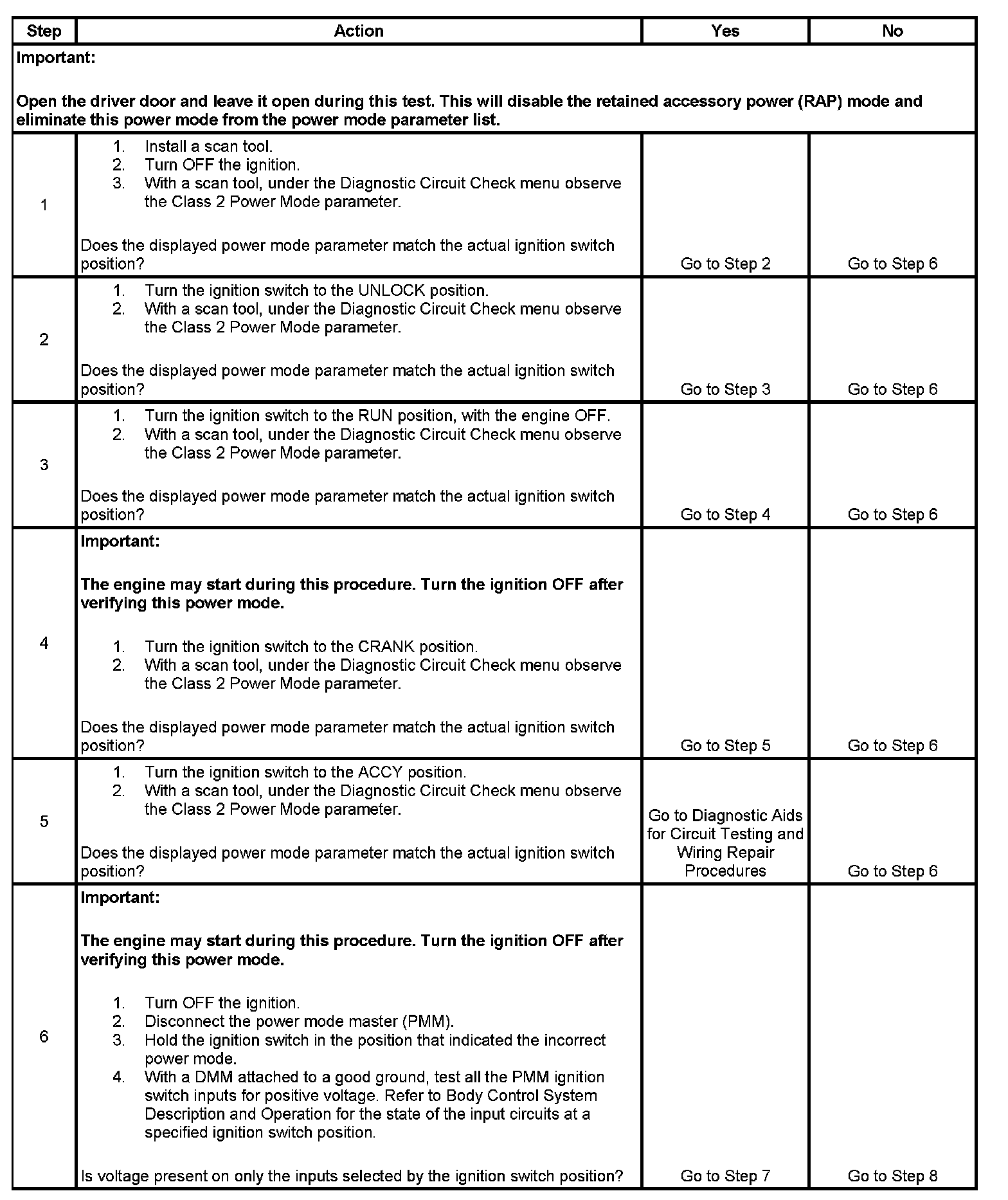 7. This step tests for no battery voltage on the required signal circuits.