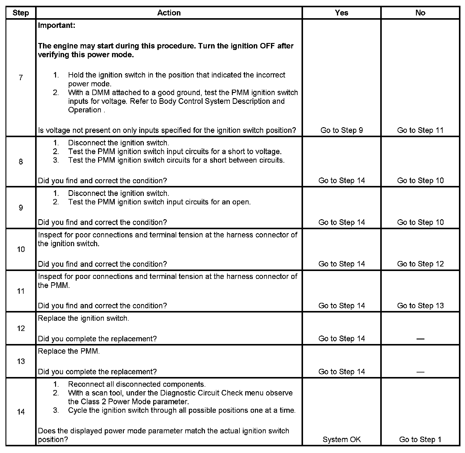 8. If any ignition switch parameters that should be inactive in the present ignition switch position are active, 2 ignition switch signal circuits may be shorted together.