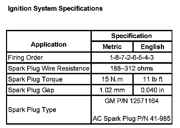 Ignition System: Specifications