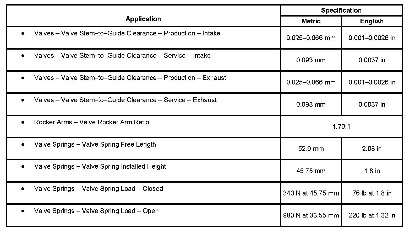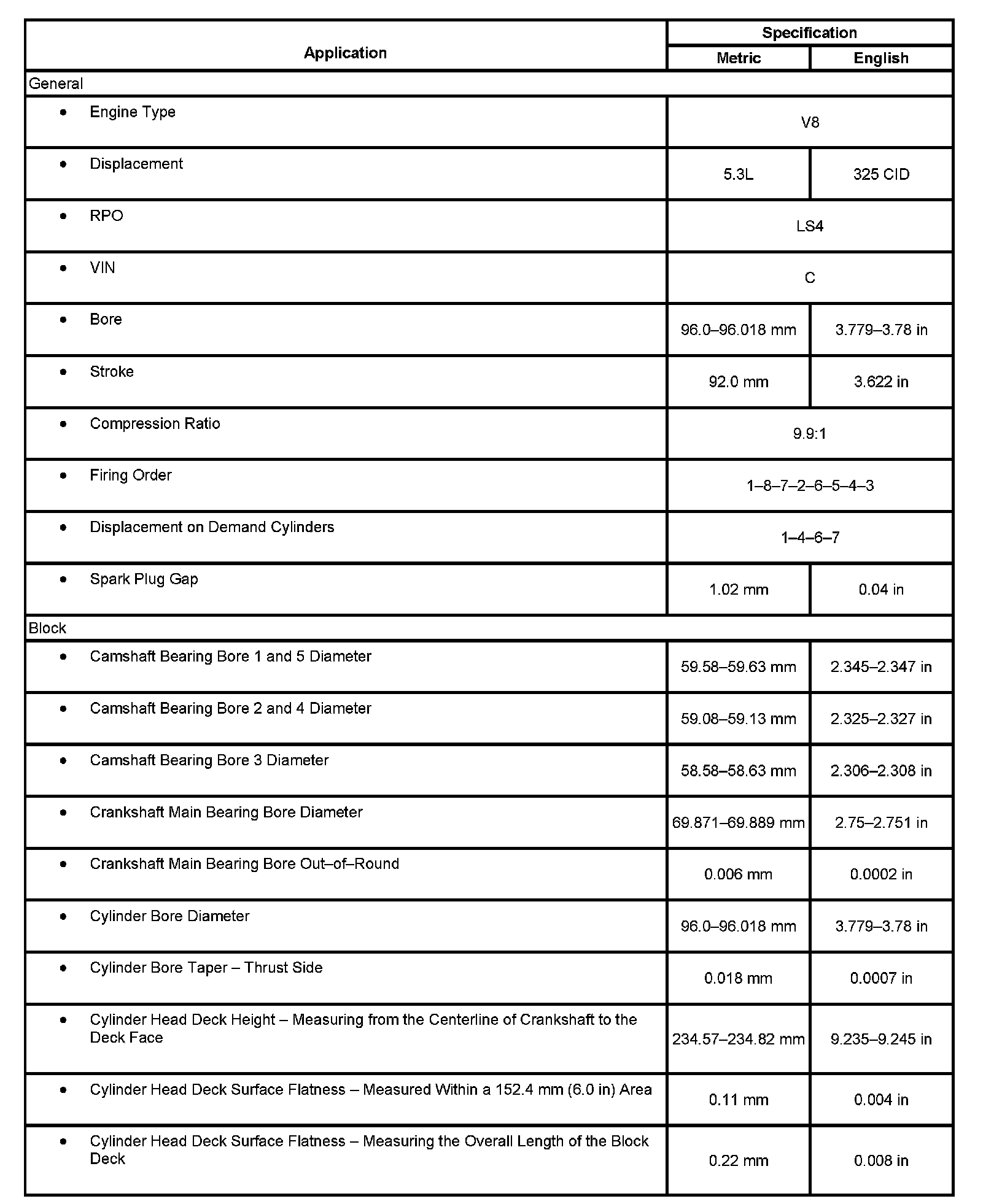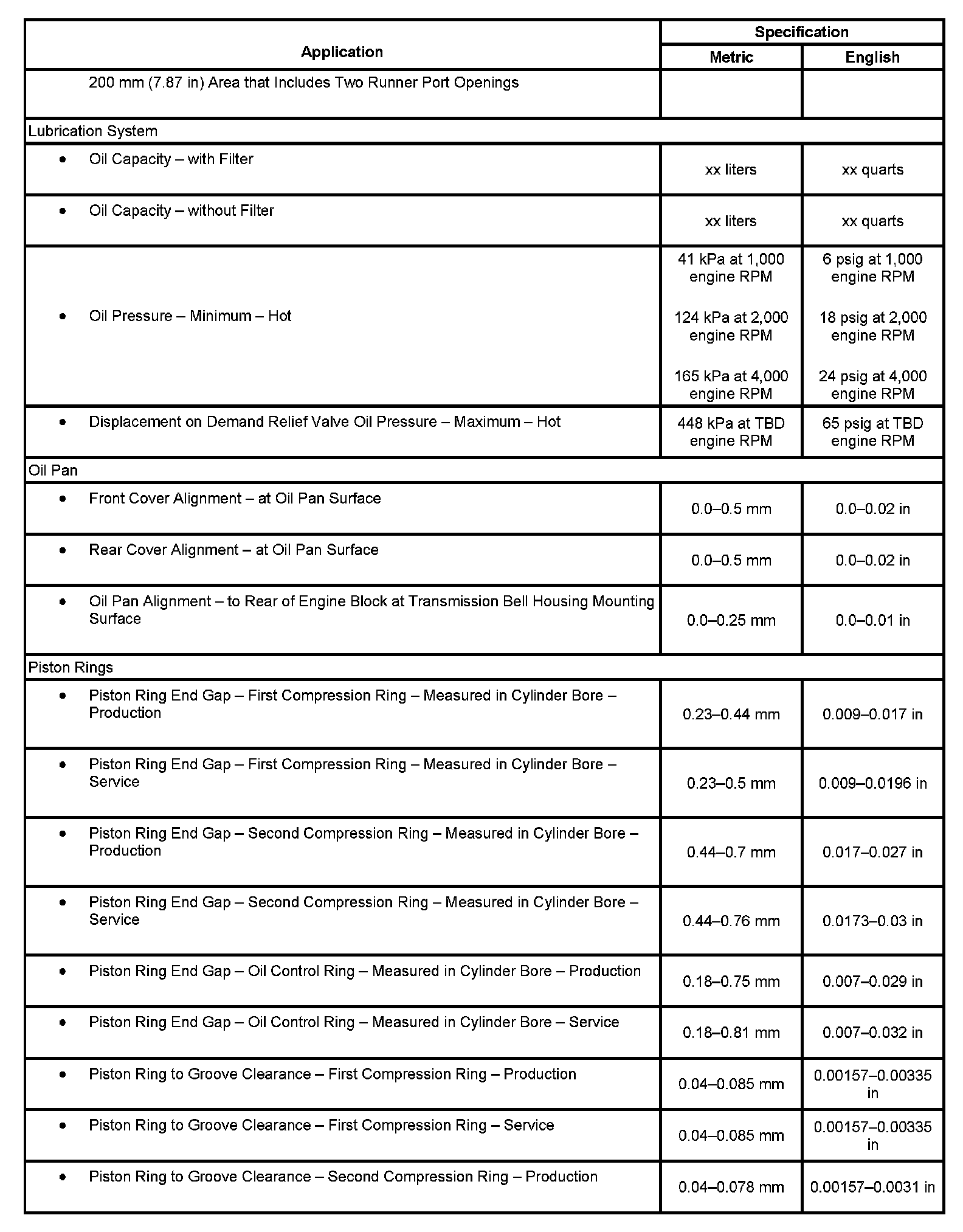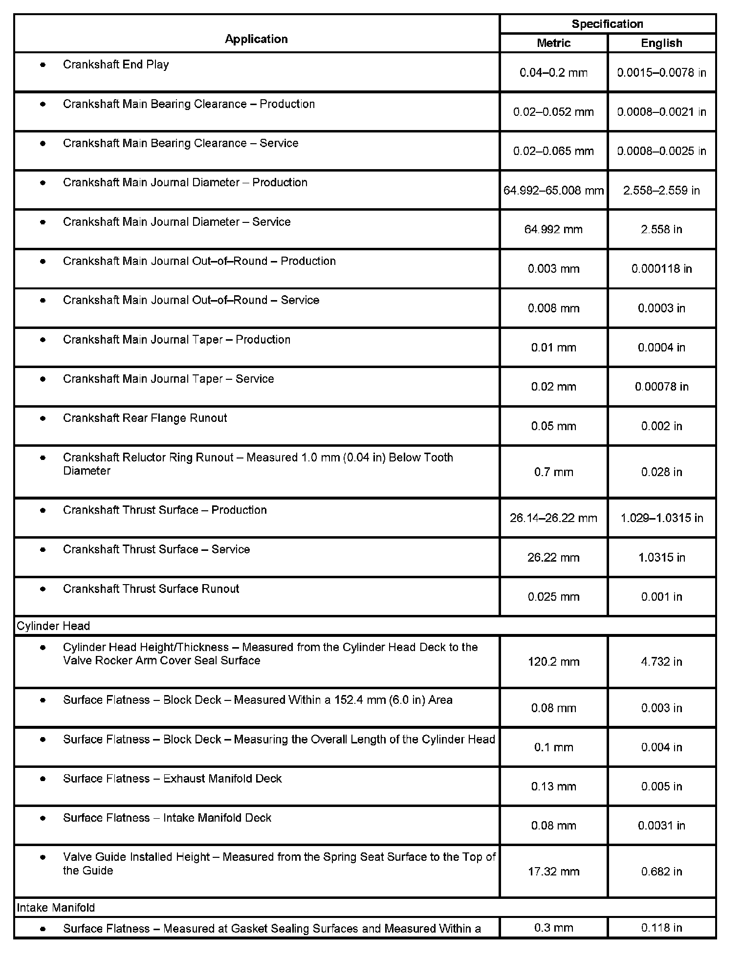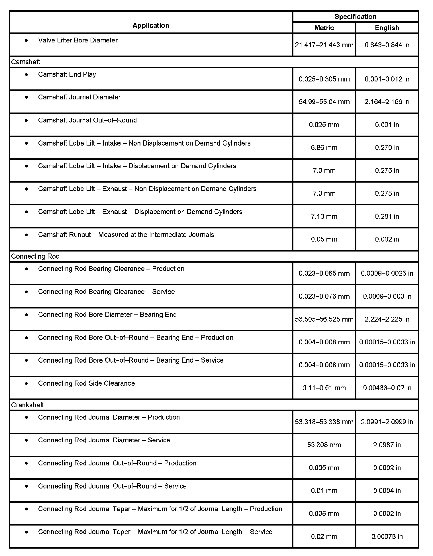 Engine Mechanical Specifications