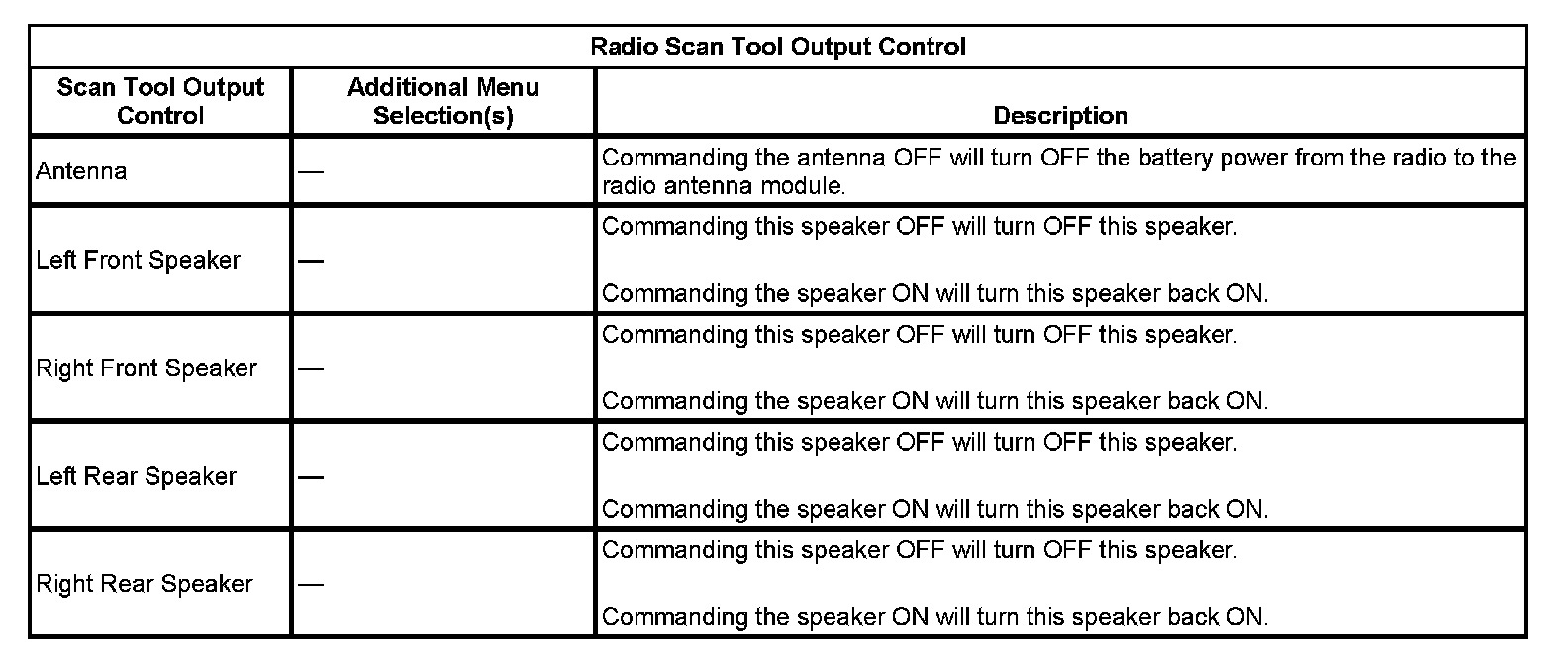 Radio Scan Tool Output Control:
