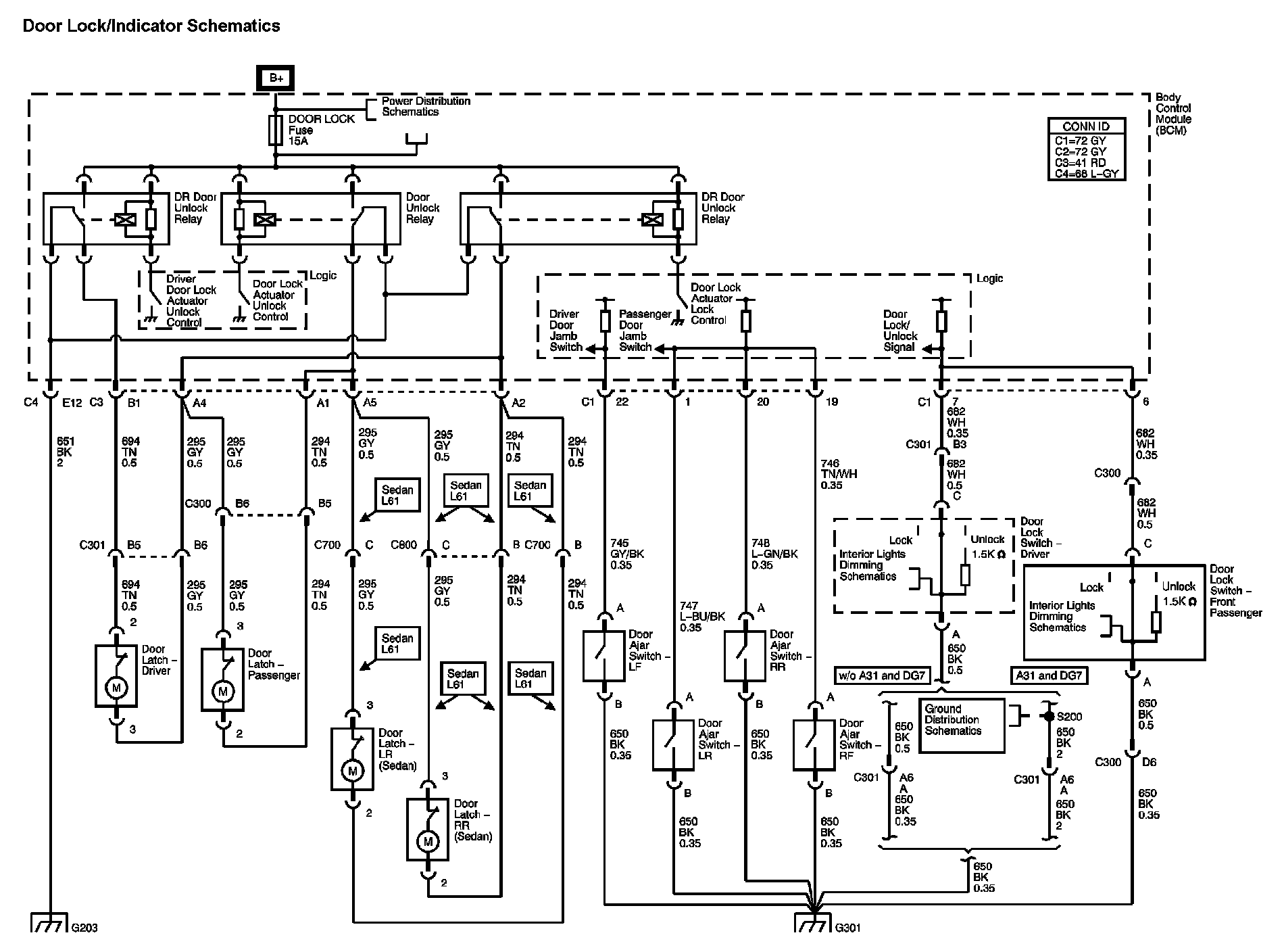 The locations for the Connectors, Grounds, Splices, and Grommets shown within these diagrams can be found via their numbers at Vehicle Locations.