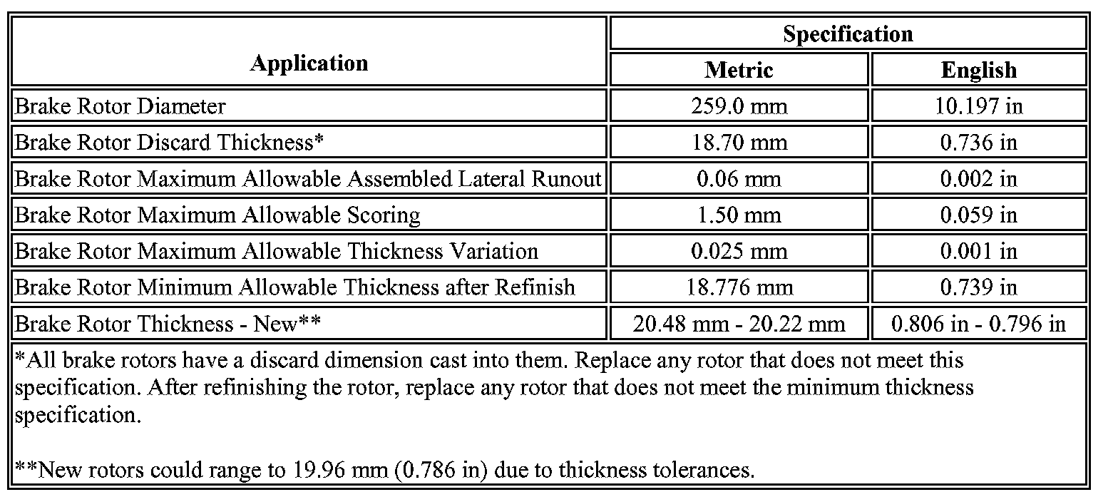 Disc Brake System: Specifications