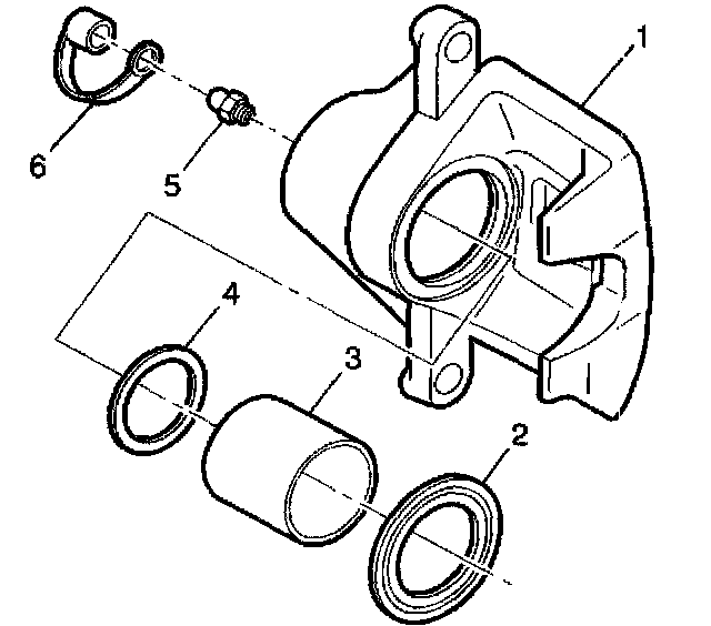 1. Inspect the brake caliper housing (1) for cracks, excess wear, and/or damage. If any of these conditions are present, the brake caliper requires replacement