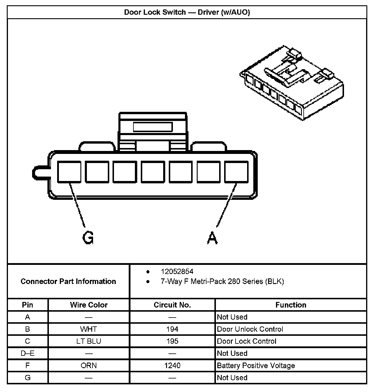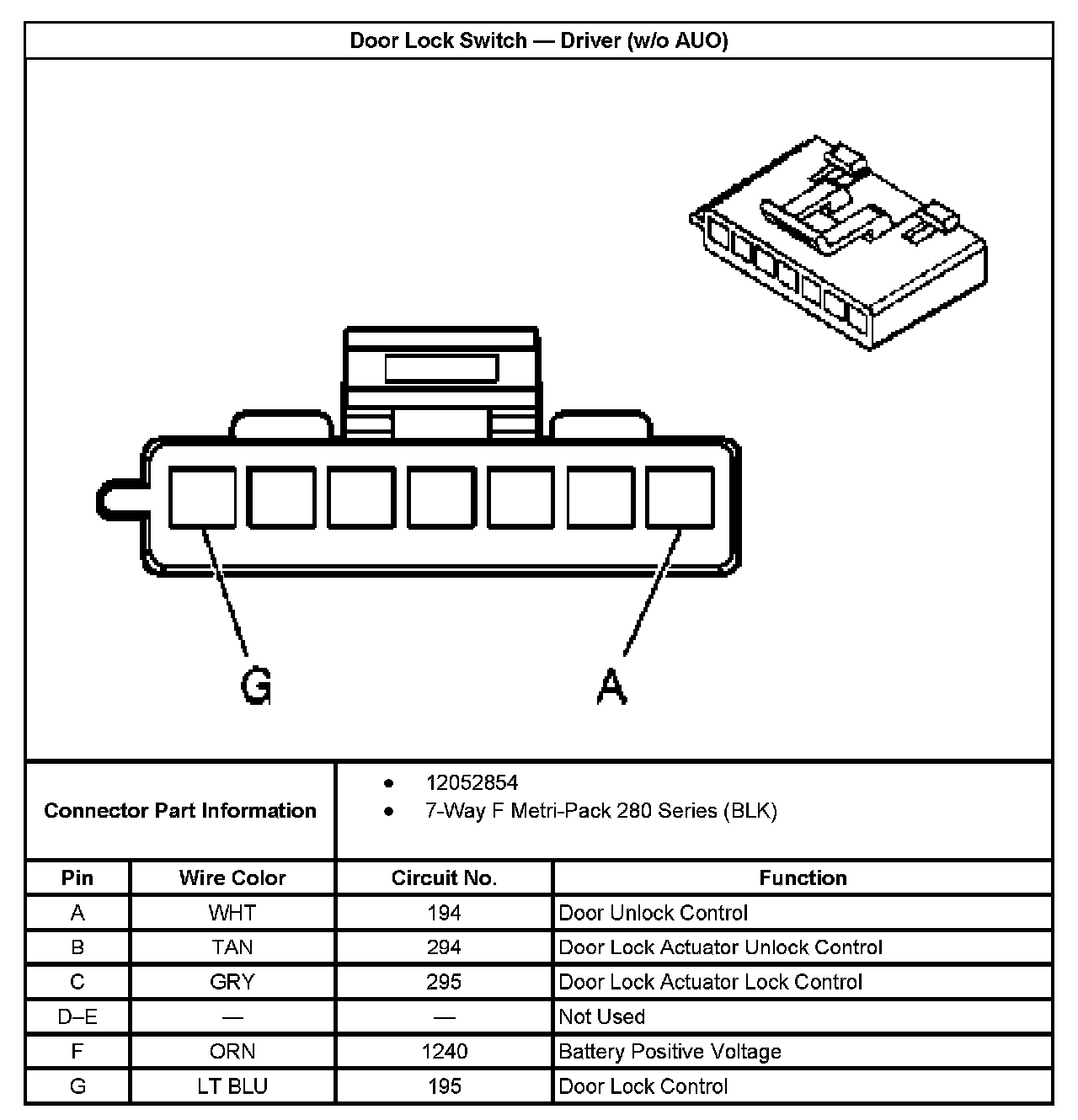 Door Lock Switch - Driver (Without RPO Code AUO):
