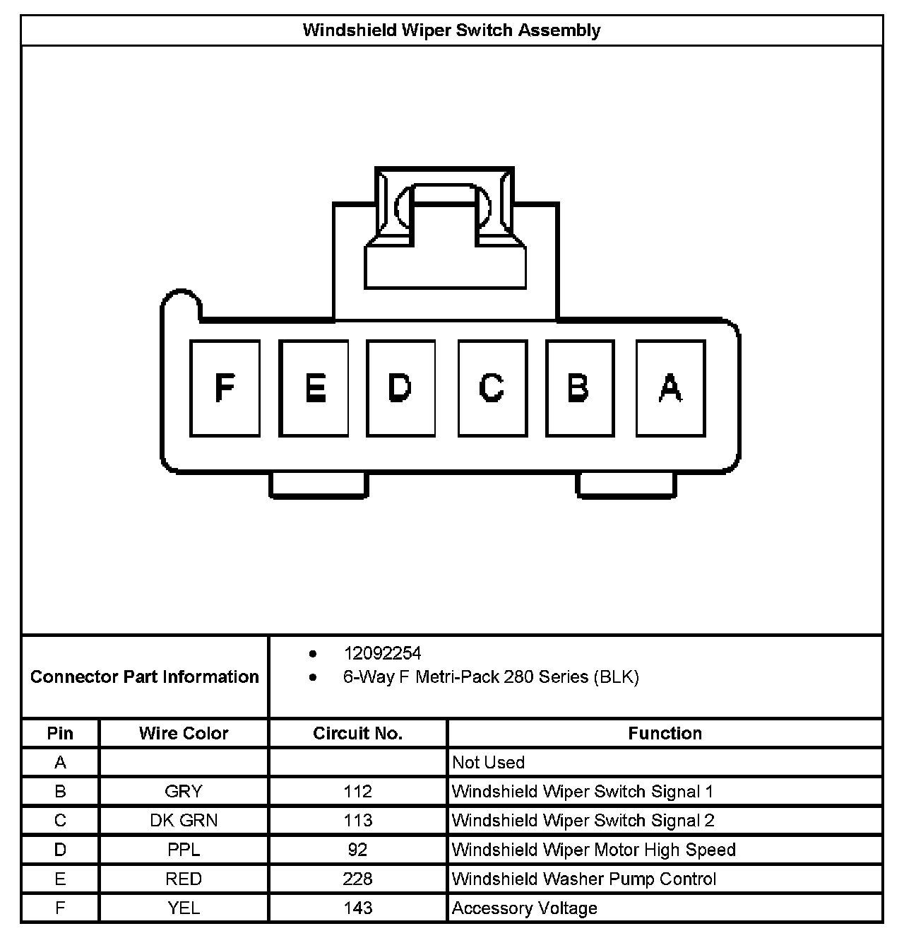 Windshield Wiper Switch Assembly: