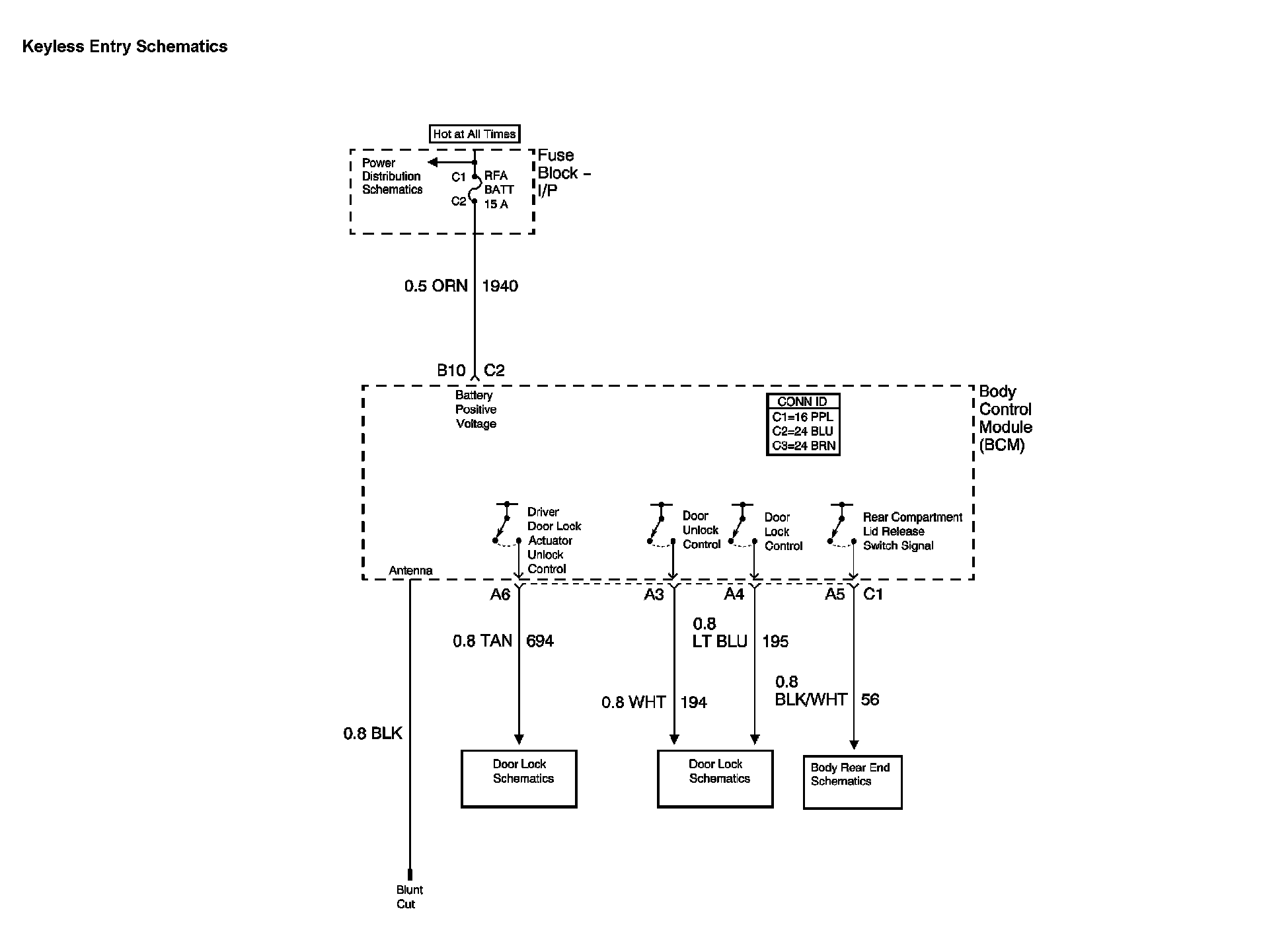 The locations for the Connectors, Grounds, Splices, and Grommets shown within these diagrams can be found via their numbers at Vehicle Locations.