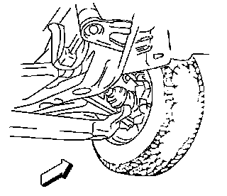 IMPORTANT: The floor jack pad must not be placed under the rear suspension crossmember front reinforcement rib.