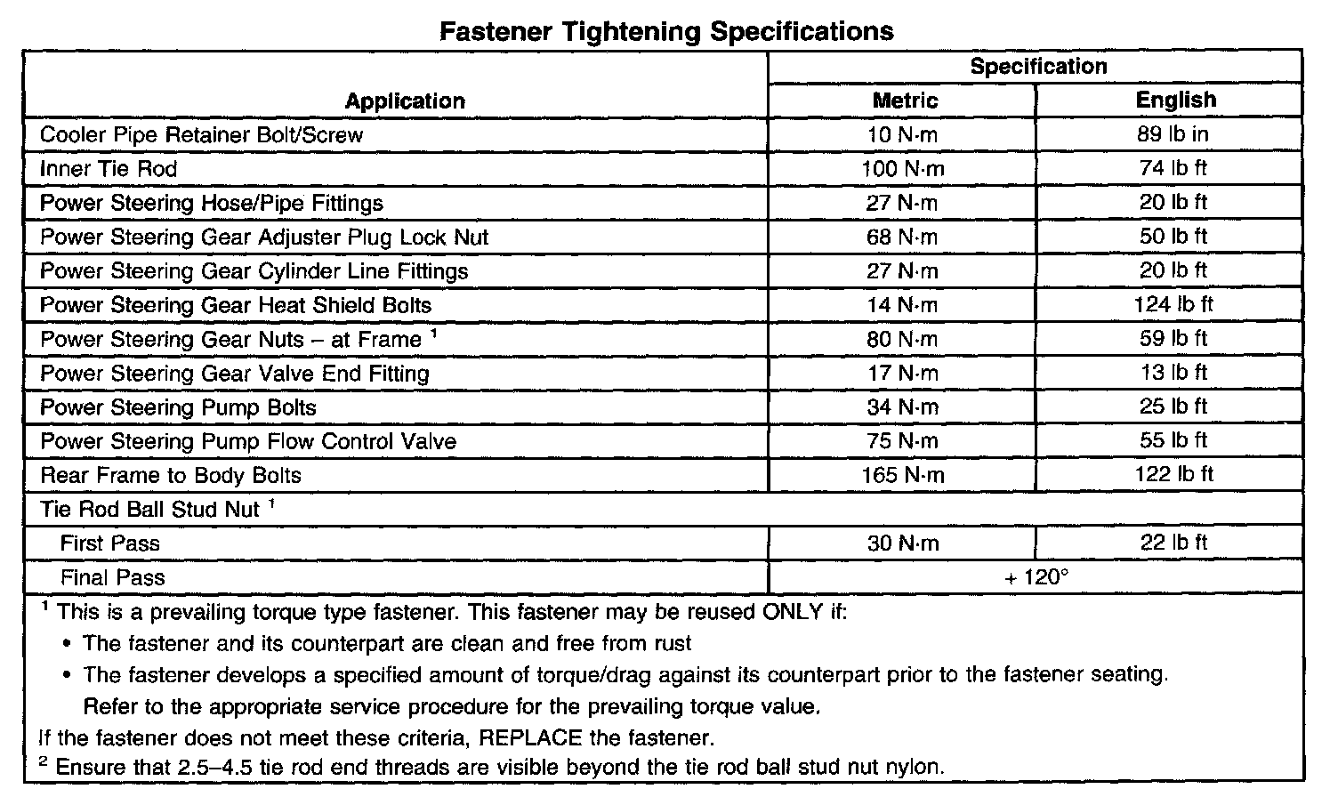 Steering System - Fastener Tightening Specifications: