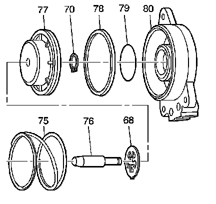 4. Remove the servo piston seals (78, 79) from the servo cover (80).