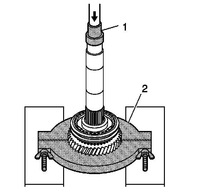1. Press off the 4th driven gear using the J 36513 (2) and the J 44378 (1).