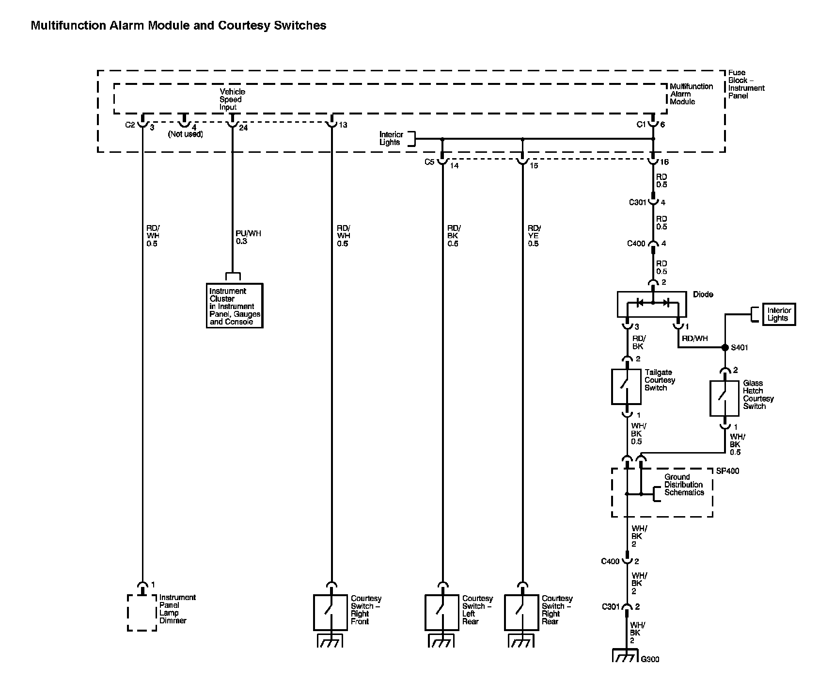 Locations: The locations for the Connectors, Grounds, Splices, and Grommets shown within these diagrams can be found via their numbers at Vehicle Locations. Locations