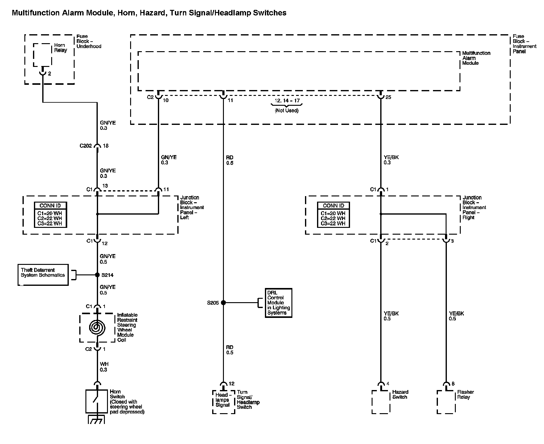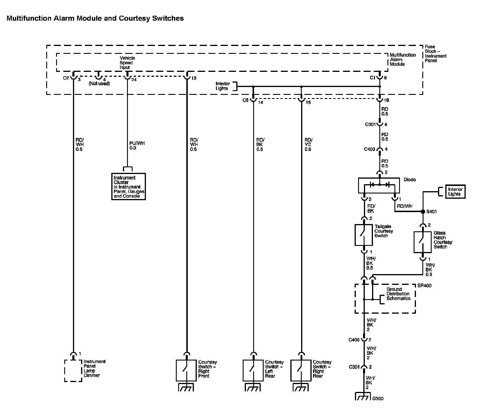 Locations: The locations for the Connectors, Grounds, Splices, and Grommets shown within these diagrams can be found via their numbers at Vehicle Locations. Locations