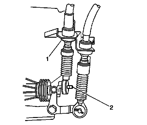 13. Remove the clip (2), then disconnect the shift cable from the bracket.