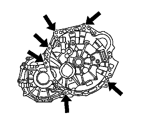 Install the 6 transaxle to engine retaining bolts.