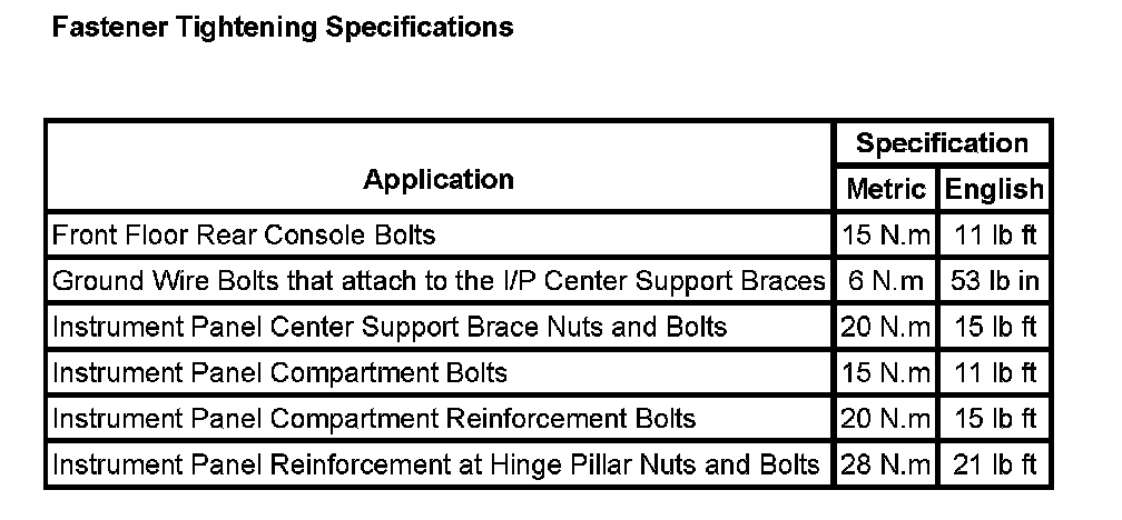 Instrument Panel, Gauges and Warning Indicators: Specifications