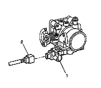 1. Disconnect the electrical connector (2) to the idle air control (IAC) valve (1).