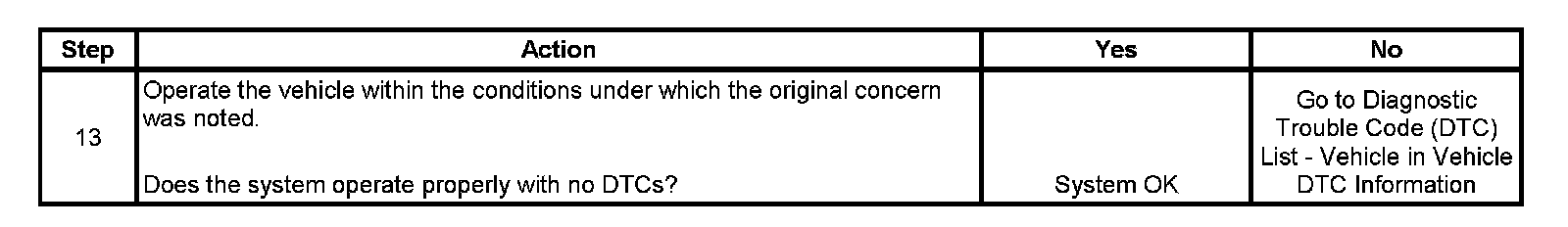 The numbers below refer to the step numbers on the diagnostic table.