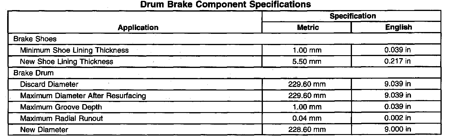Drum Brake Component Specifications