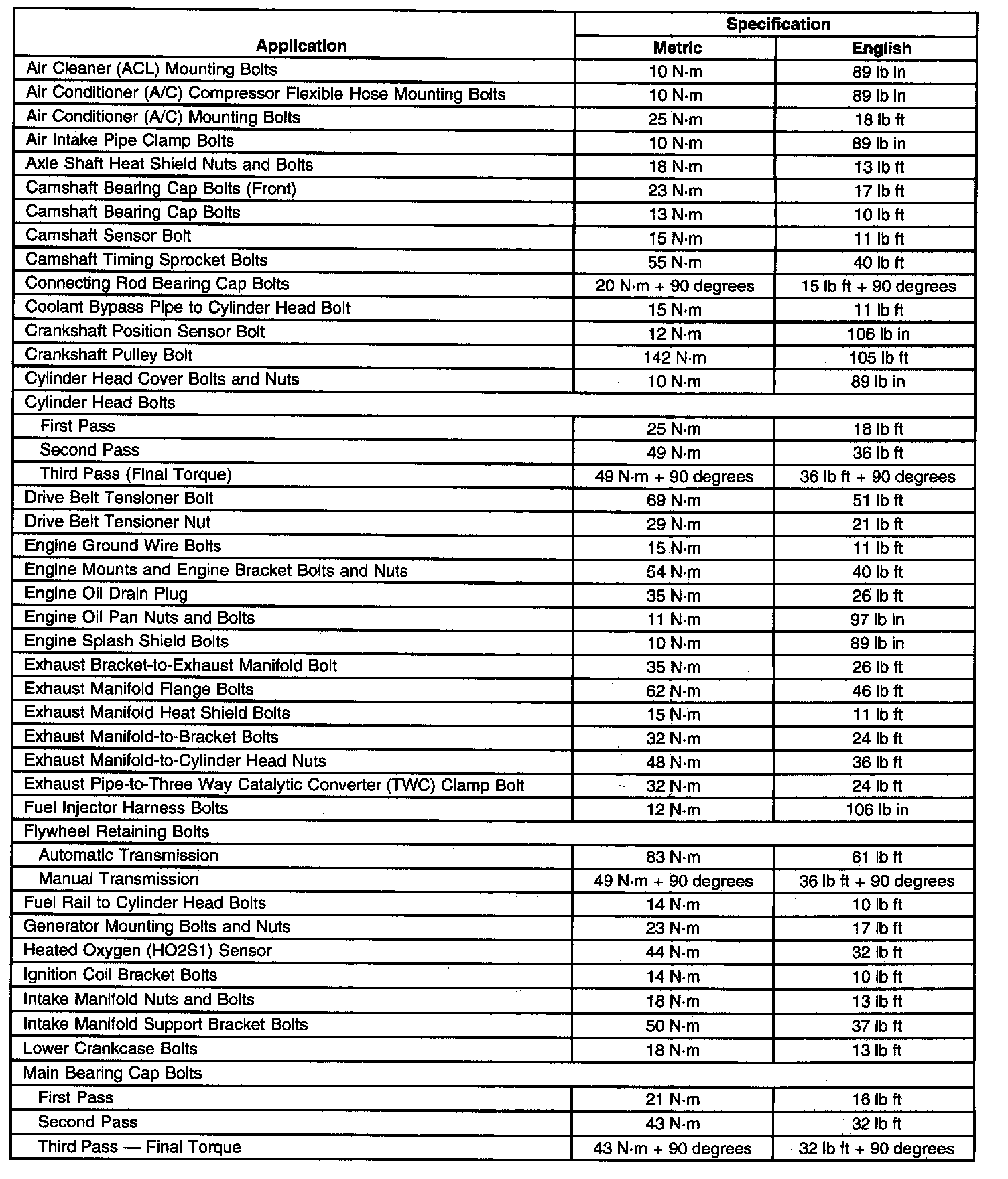 Torque Specifications
