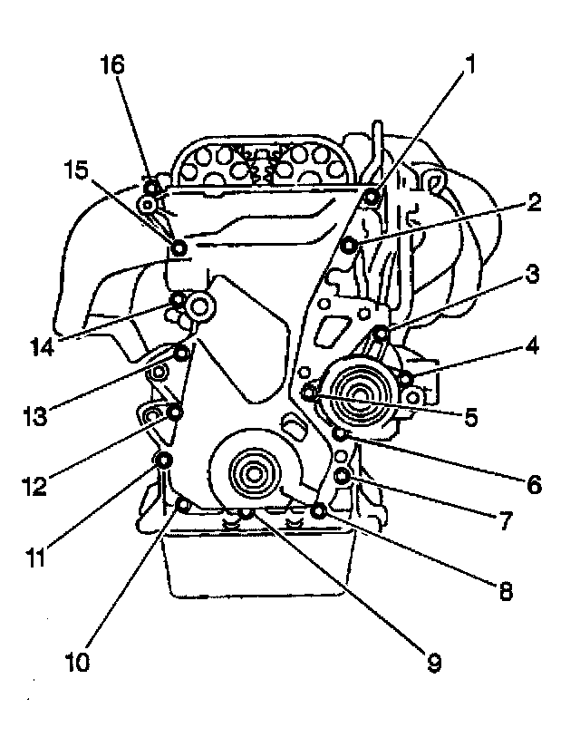 Tighten the timing chain cover nut and bolts (12 mm (0.394 inch) head) 18 Nm (14 lb ft)