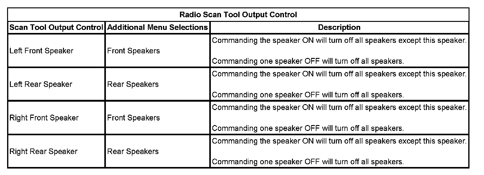 Radio Scan Tool Output Control: