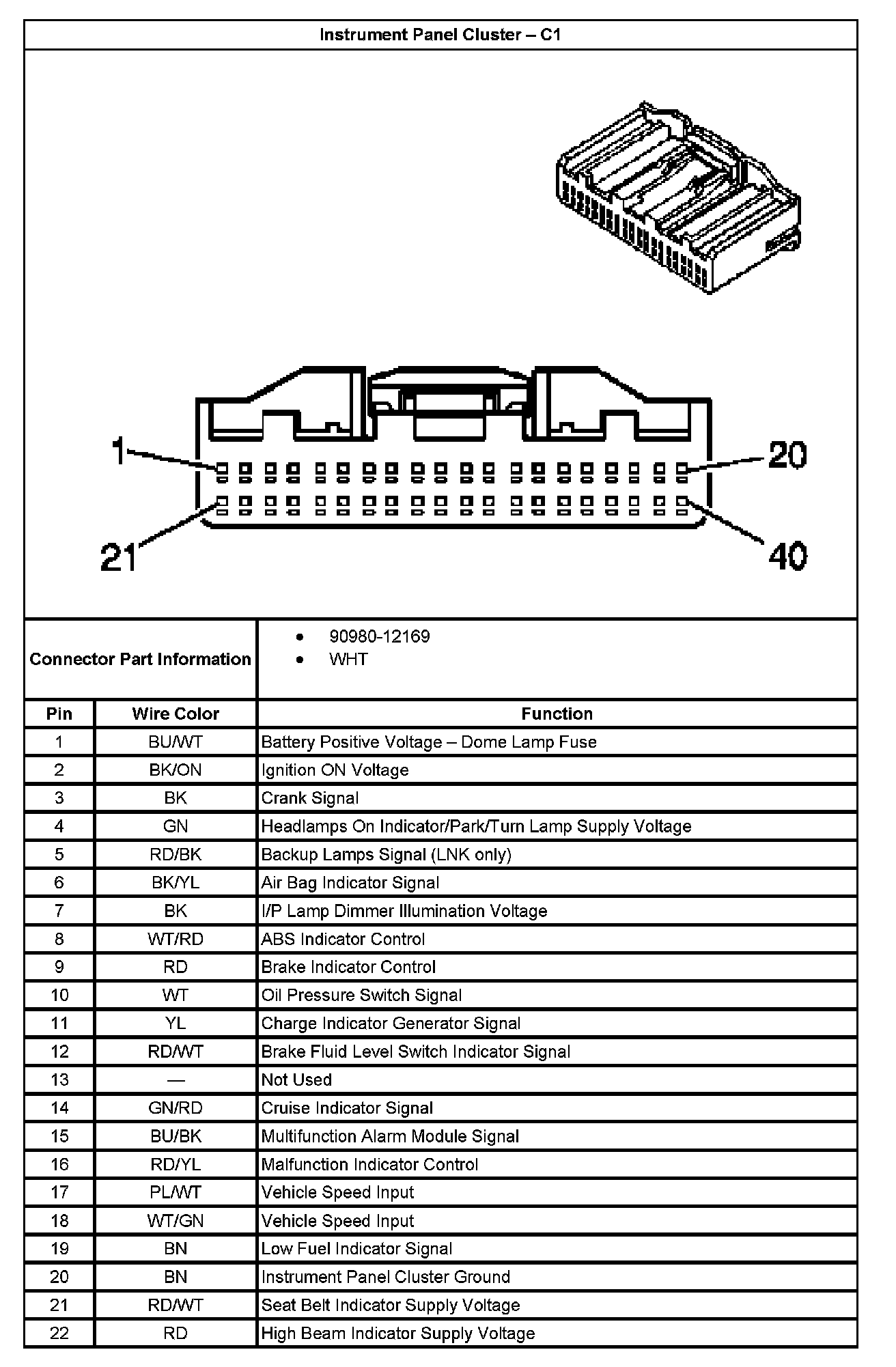 Instrument Panel Cluster - C1 Part 1: