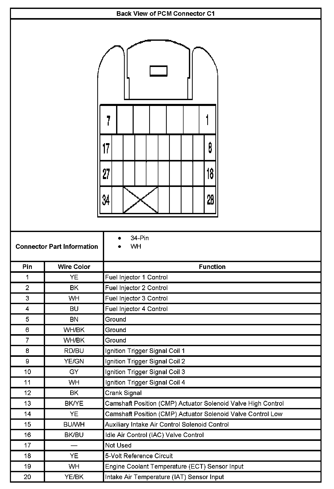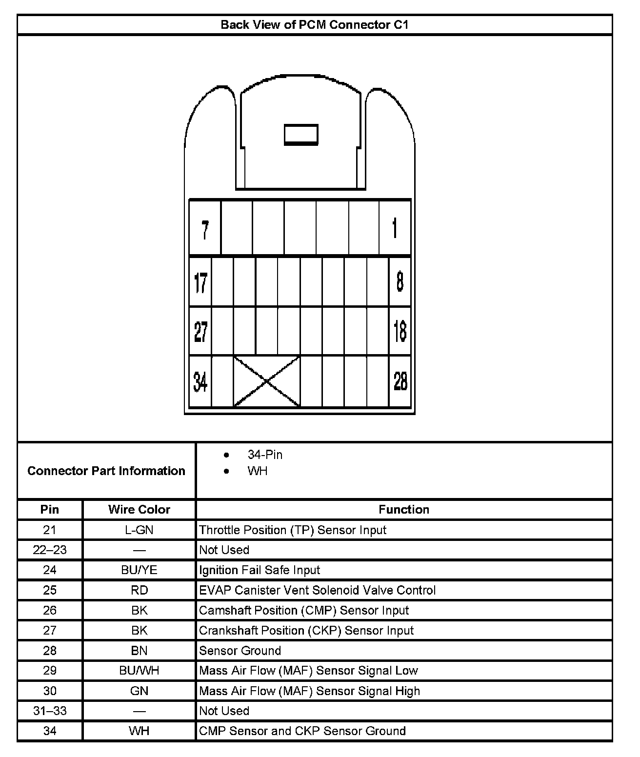 Back View of PCM Connector C1
