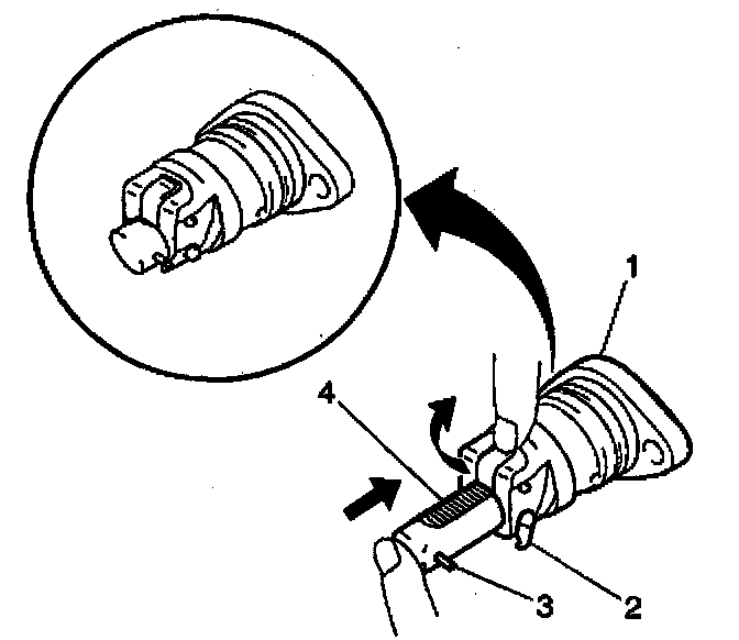 Apply the hook (2) to the pin (3).
