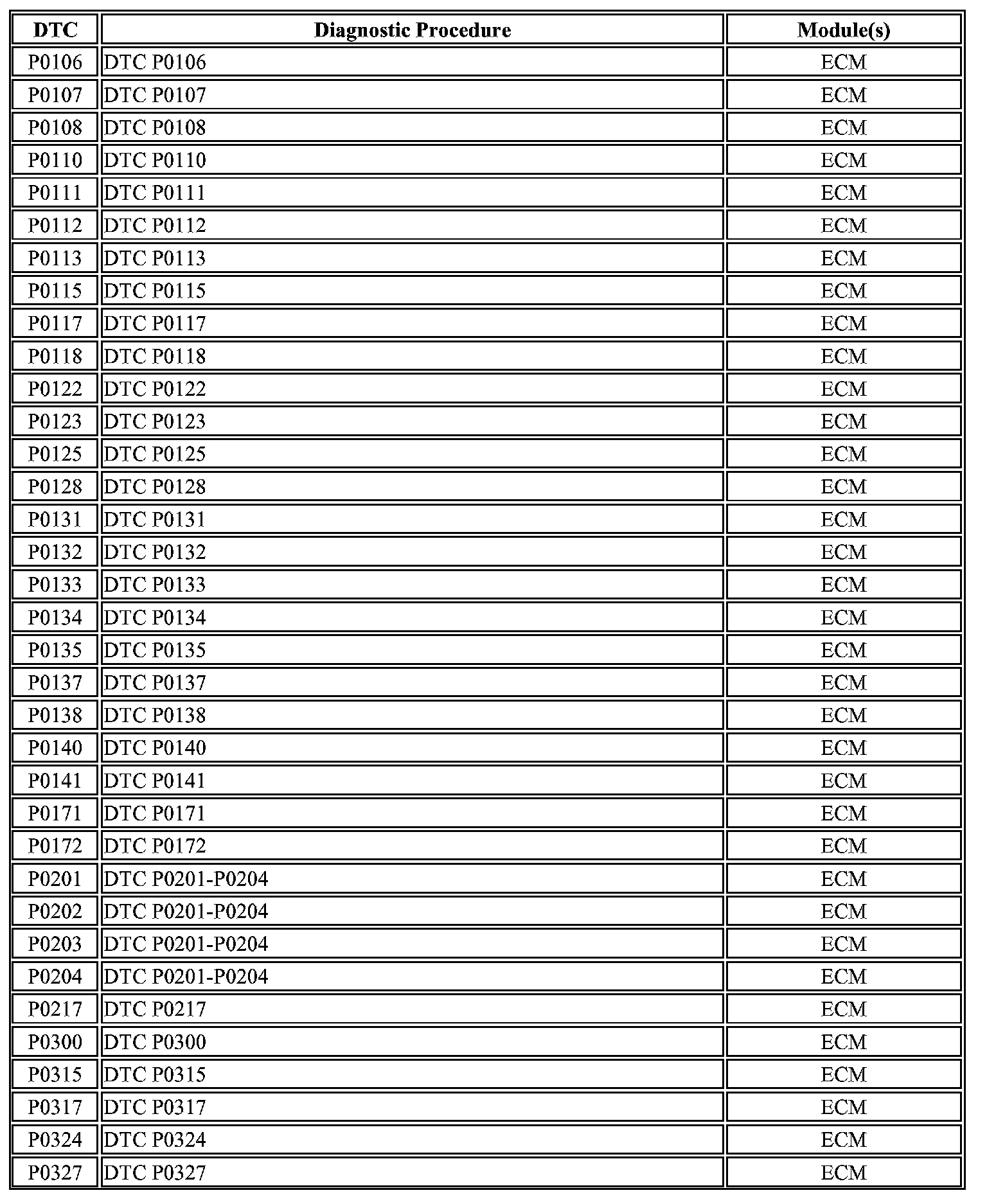 A L L Diagnostic Trouble Codes ( DTC )