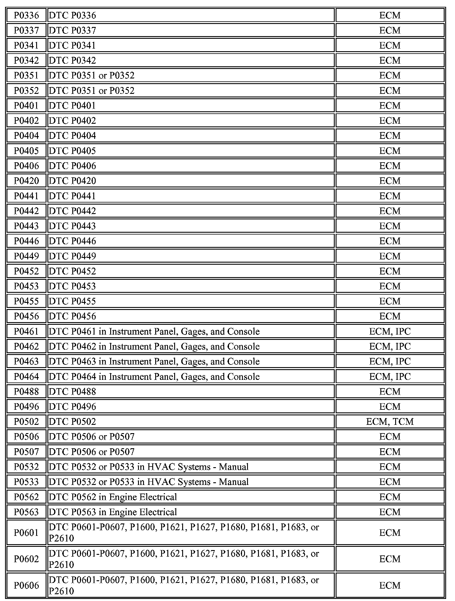 DTCs P0336 - P0606: