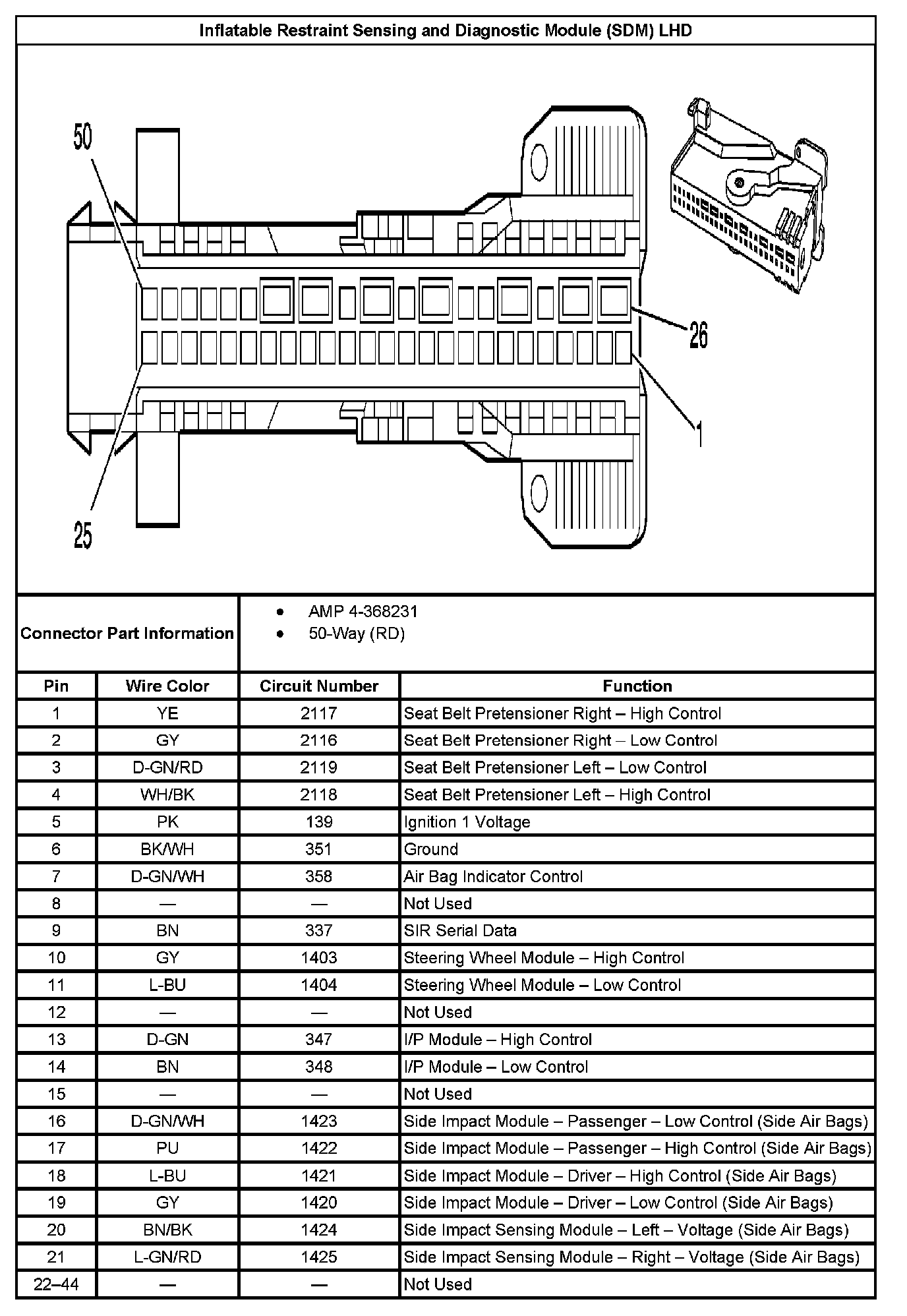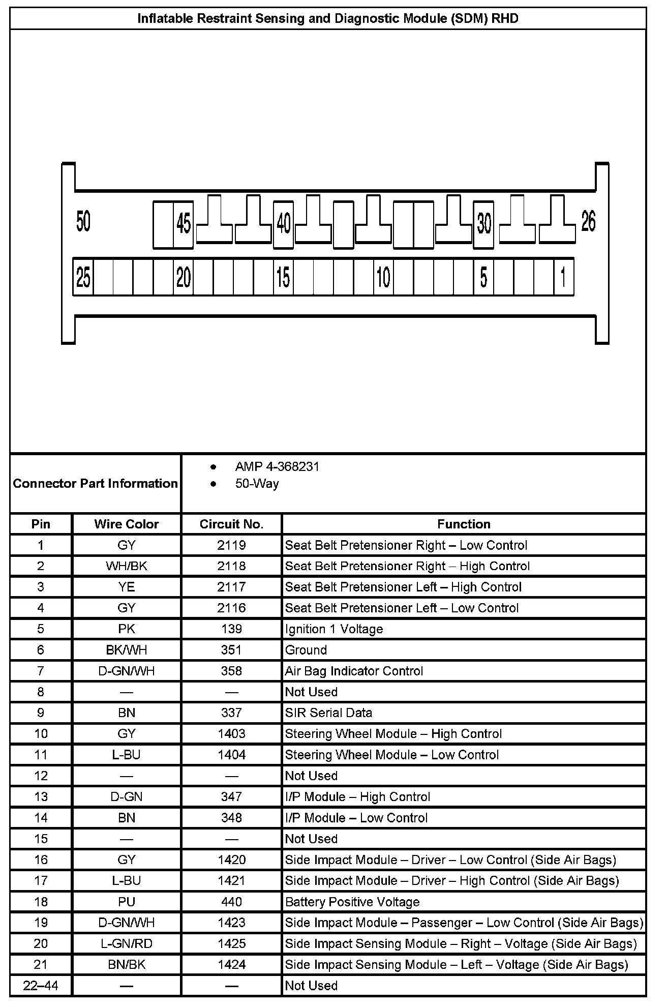Inflatable Restraint Sensing And Diagnostic Module (SDM) RHD Part 2: