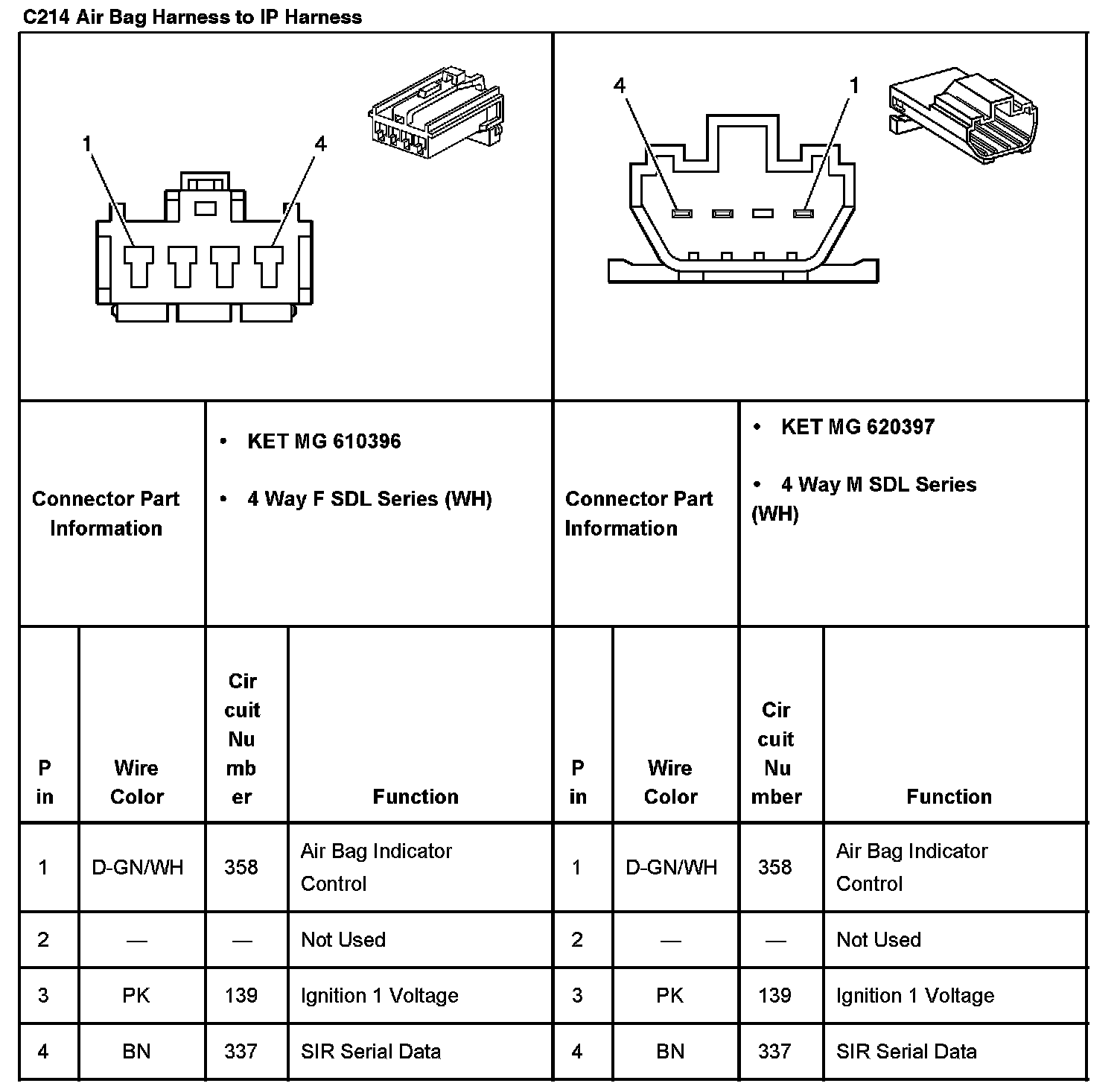 C214 Air Bag Harness To IP Harness: